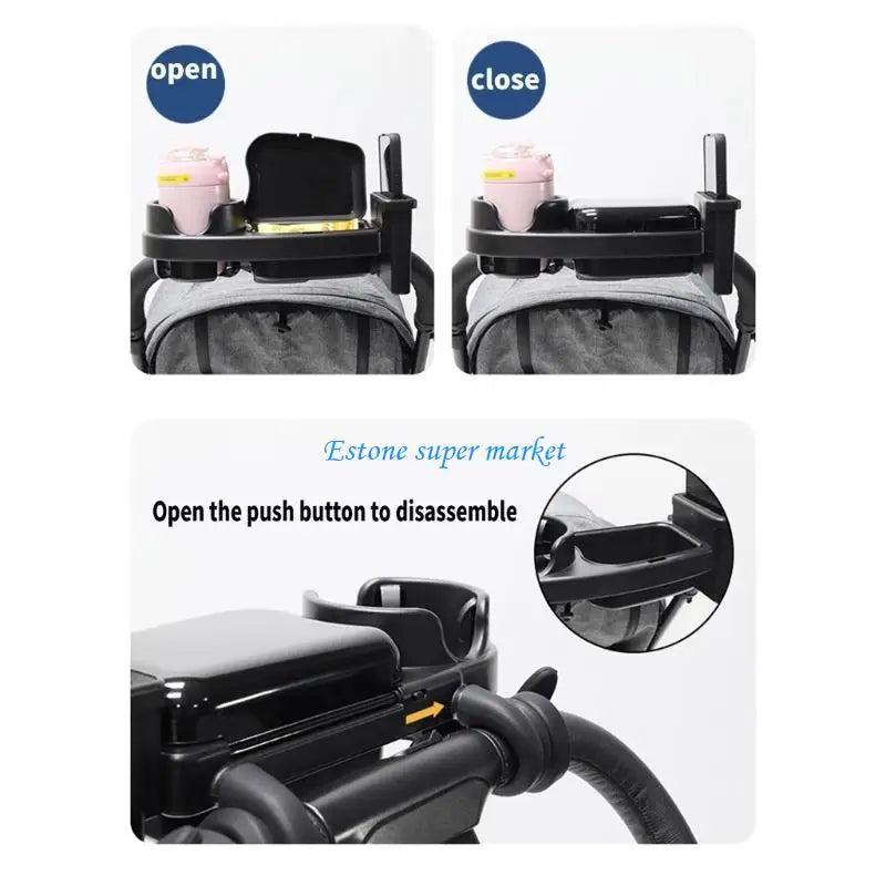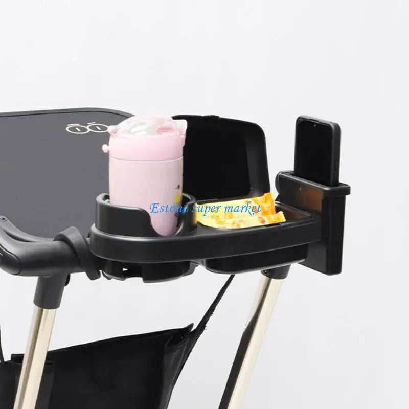 090B 3 in 1 Strollers Milk Bottle Cup Holder for Snacks & Drink Strollers Tray Phone Holder Detachable Tray