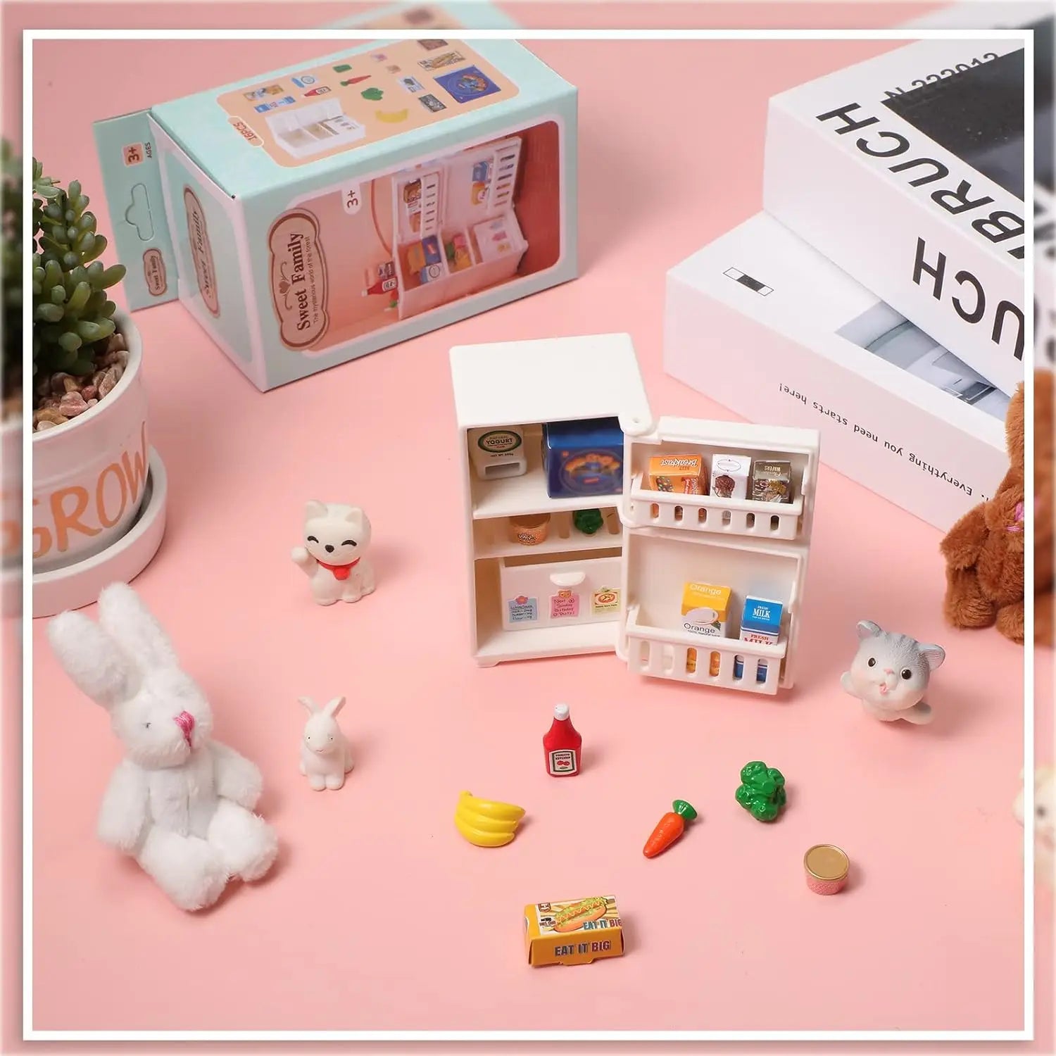 1:12 Miniature Dollhouse White Refrigerator Toy Mini Fridge Toy Simulated Food Pretend Play Toys Kitchen Furniture Home Decor