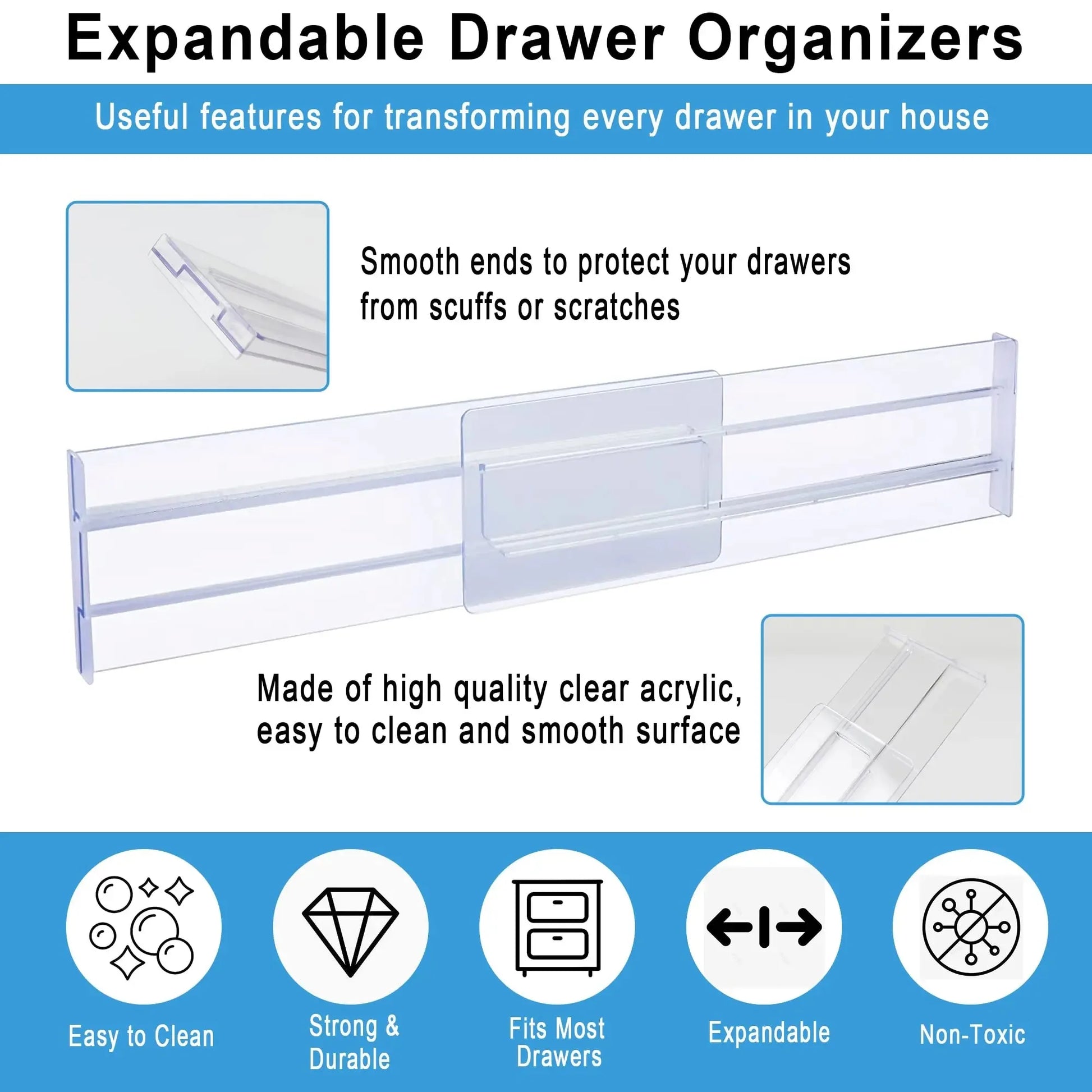 1/2/4/8PCS Drawer Dividers Organizers Adjustable Cabinet Storage Clothes Drawer Organizer Clear Drawers Separators Kitchen Tools