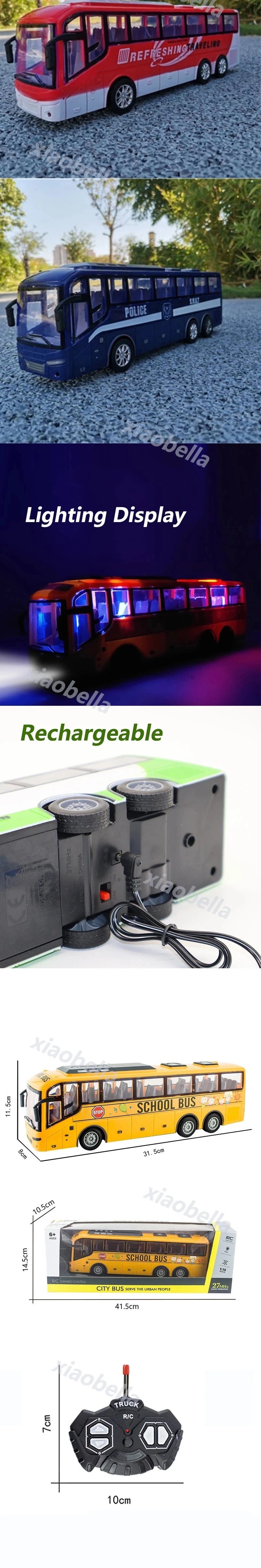 1:30 RC City Bus High Speed Racing Model RC Car School Bus Police Bus Tour Bus Realistic Beaming Lights Rubber Tires Toys Boys