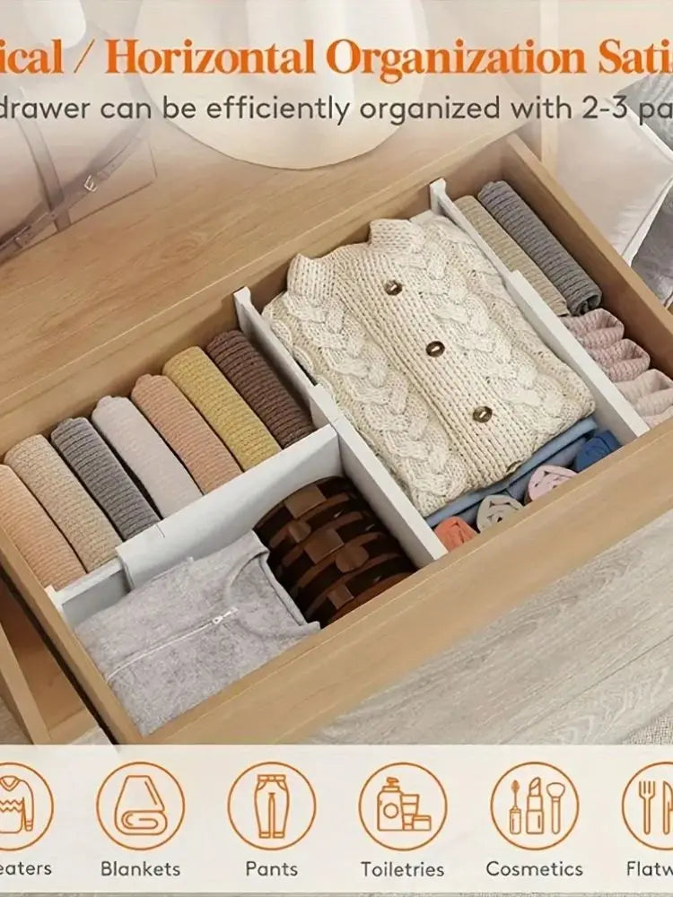 1/4/5 Drawer Dividers Plastic 5 High, Adjustable Drawer Organizers Clothes, Expandable Dresser Separators in Bedr