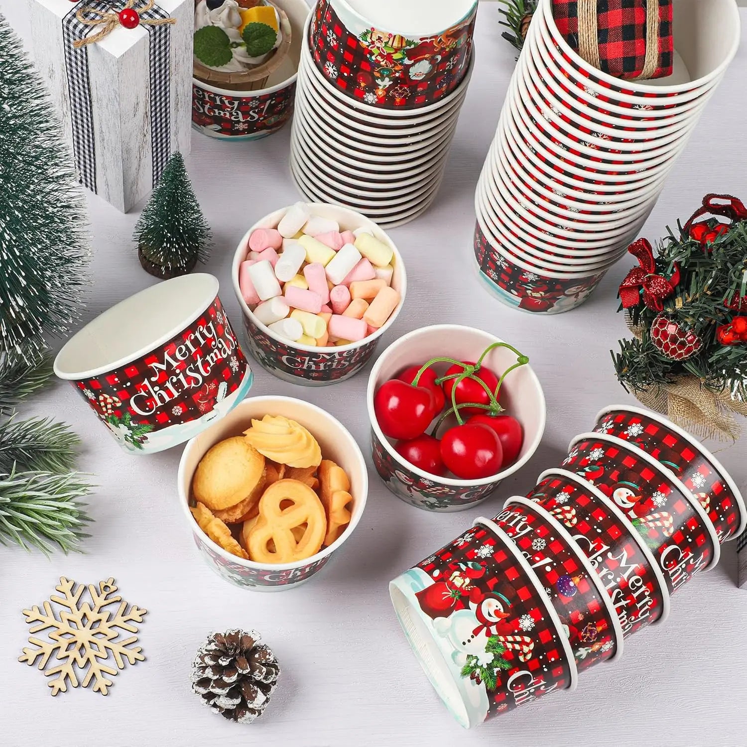 10/25pcs Christmas Snack Bowls Christmas Paper Ice Cream Cups, Santa Claus, Snowman Cake Paper Cups, 9oz Treat Dessert Bowls