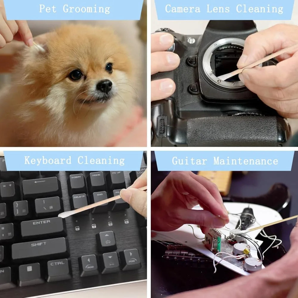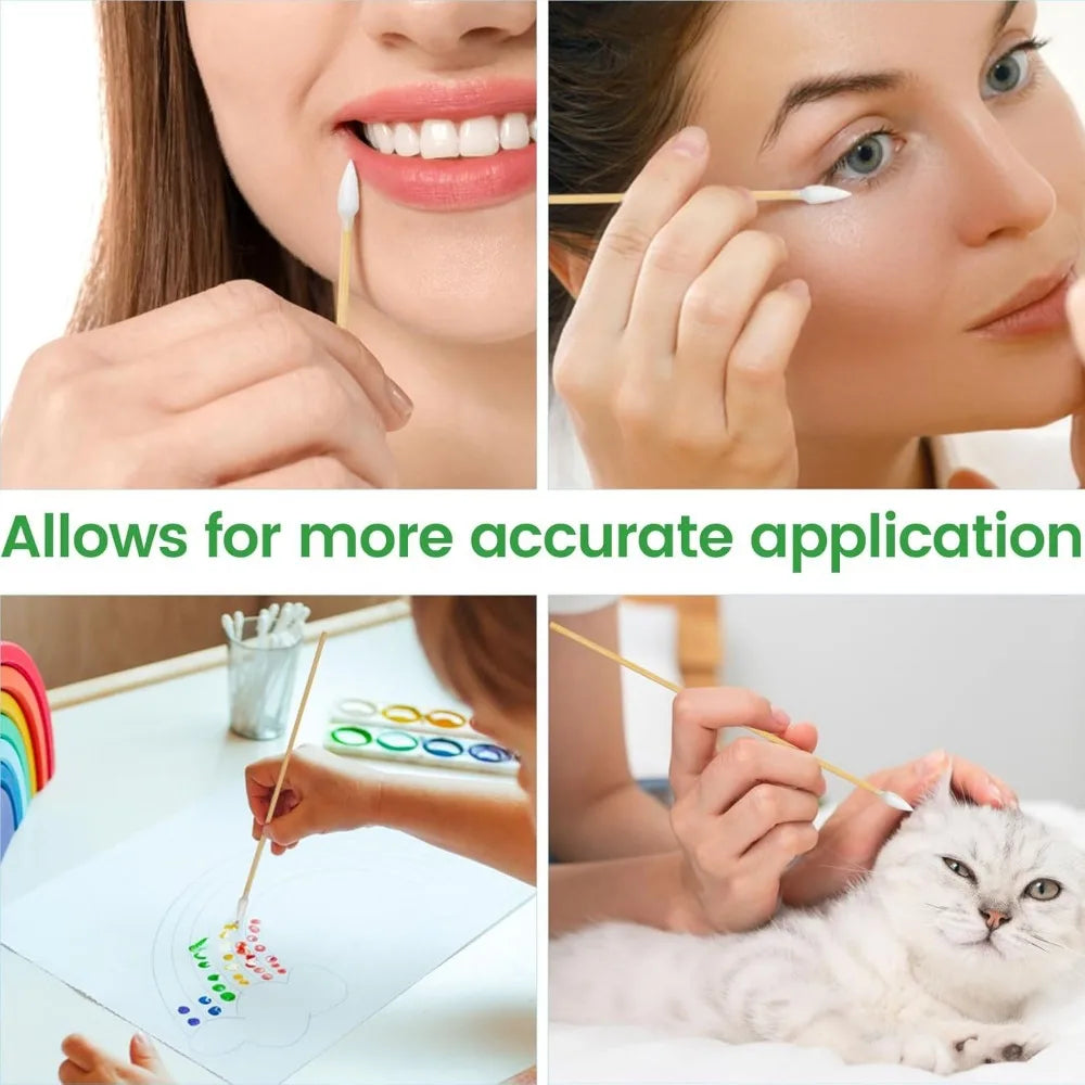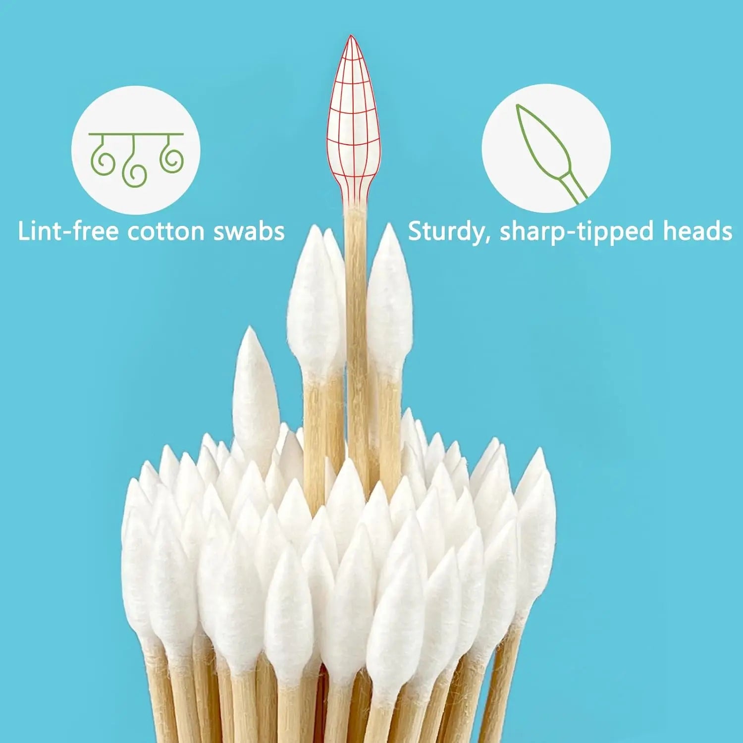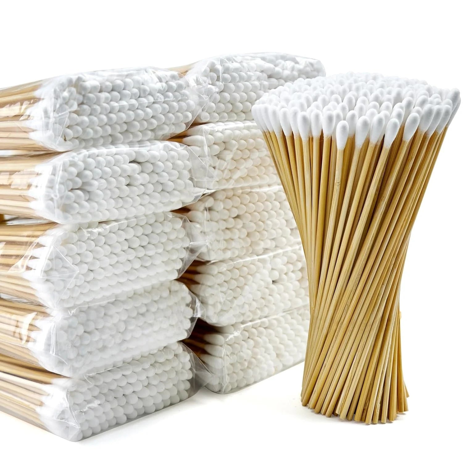 100/300PCS 6 Inch Precision Tips Cotton Swabs - Long Wooden Stick Cotton Buds Pointed Cotton Swabs With Case - Cotton