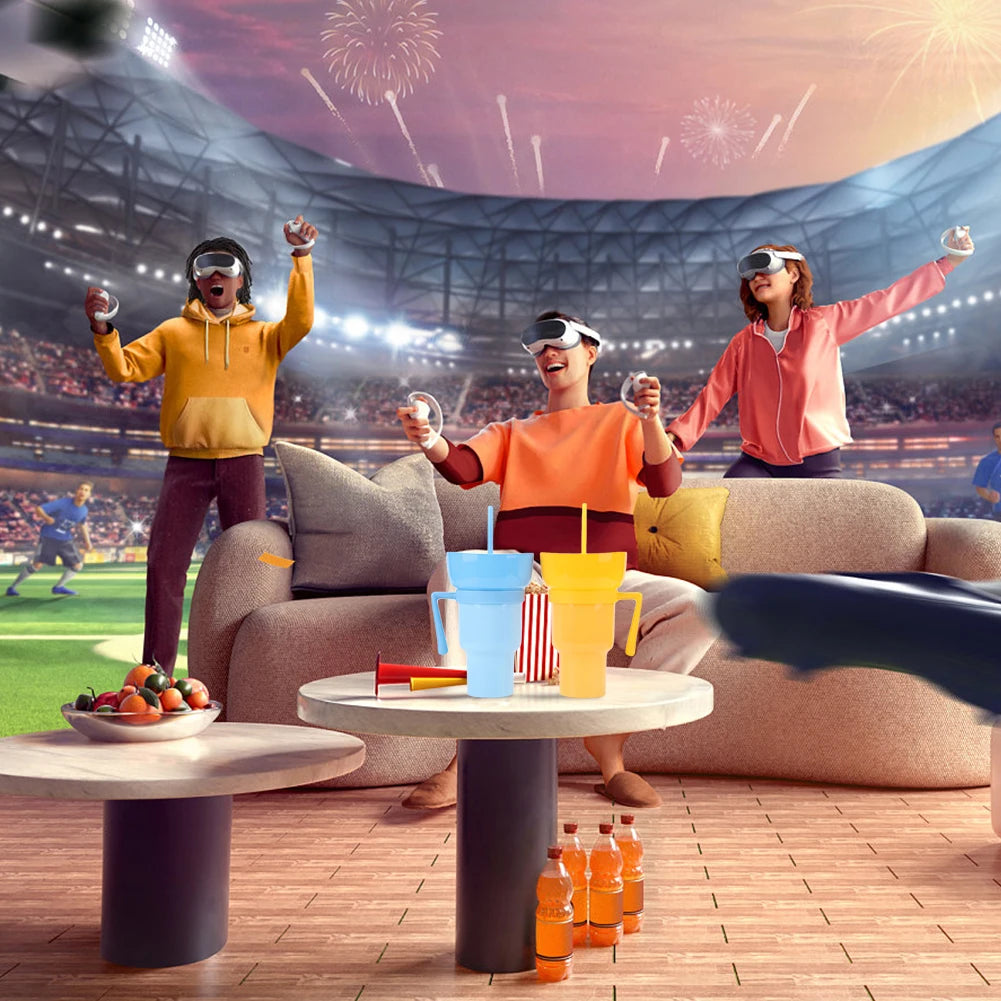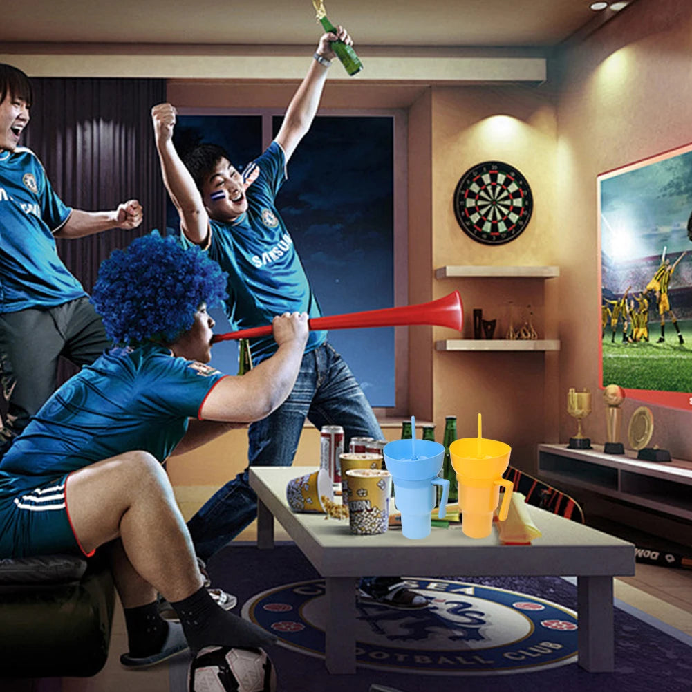 1000ml Snack Bowl Drink Cup with Straw 2 In 1 Stadium Tumbler Splash Proof Leakproof Popcorn Beverage Cup for Cinema Travel