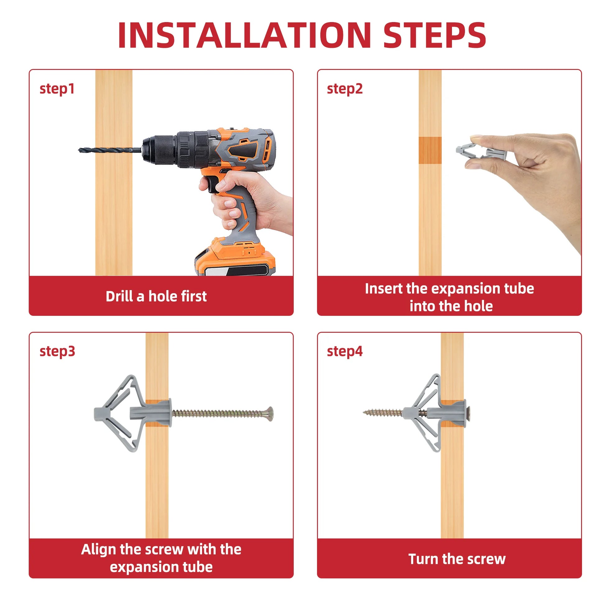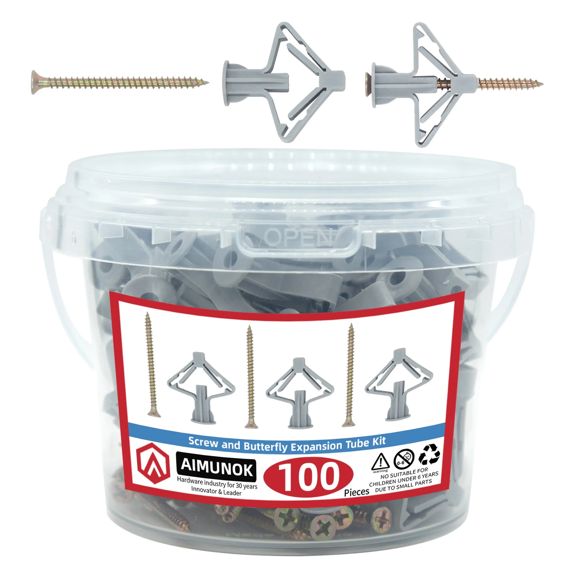 100pcs Drywall Anchor Kit Hollow Wall Anchors Plasterboard Plugs Screws Butterfly Expansion Tube Pipe 50 Set