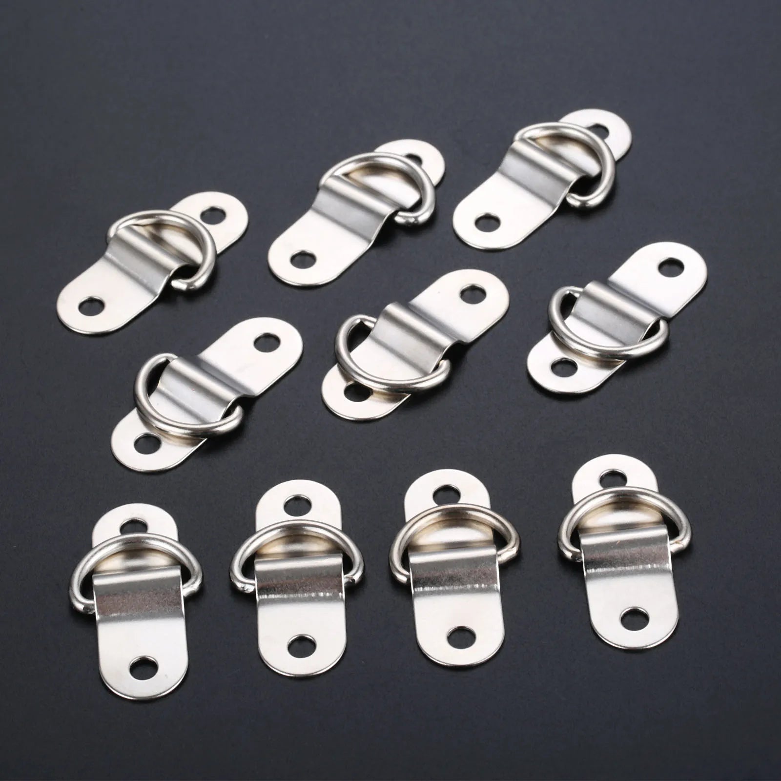 10Pcs Boat Trailers D Ring Durable Tie Down Hook Rope Cleat Load Anchor Metal Flat Seamless D Ring D Button Half Round Buckle