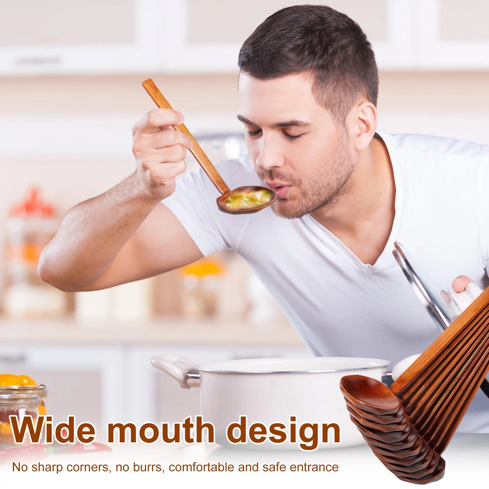 10PCS Wood Soup Spoon with Long Handle Japanese Style Ramen Spoon Large Hot Pot Spoon Tortoise Shell Spoon Serving Spoon