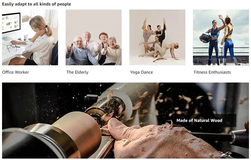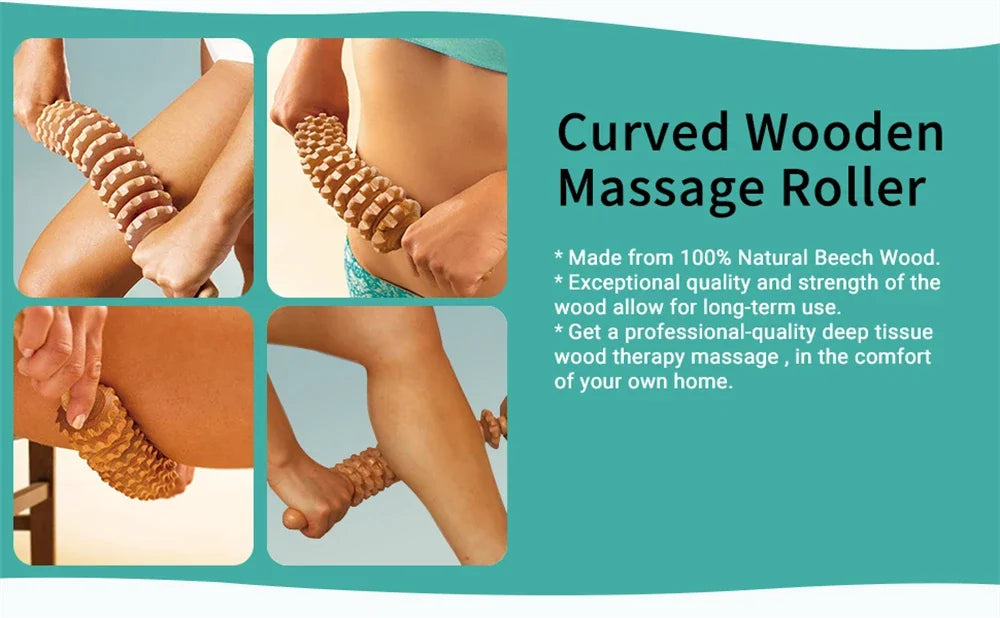 12 Rollers Wooden Curved Massager Handheld Roller Stick, Trigger Point Body Therapy Massager for Belly Waist Muscles Pain Relief