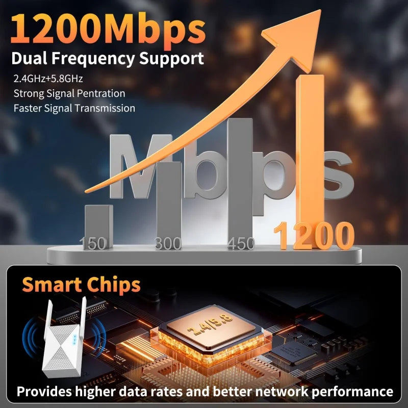 1200Mbps WiFi Repeater Wireless Signal Extender 2.4G 5GHz Dual Band Wi-Fi Amplifier Router Long Range Signal Booster For Home