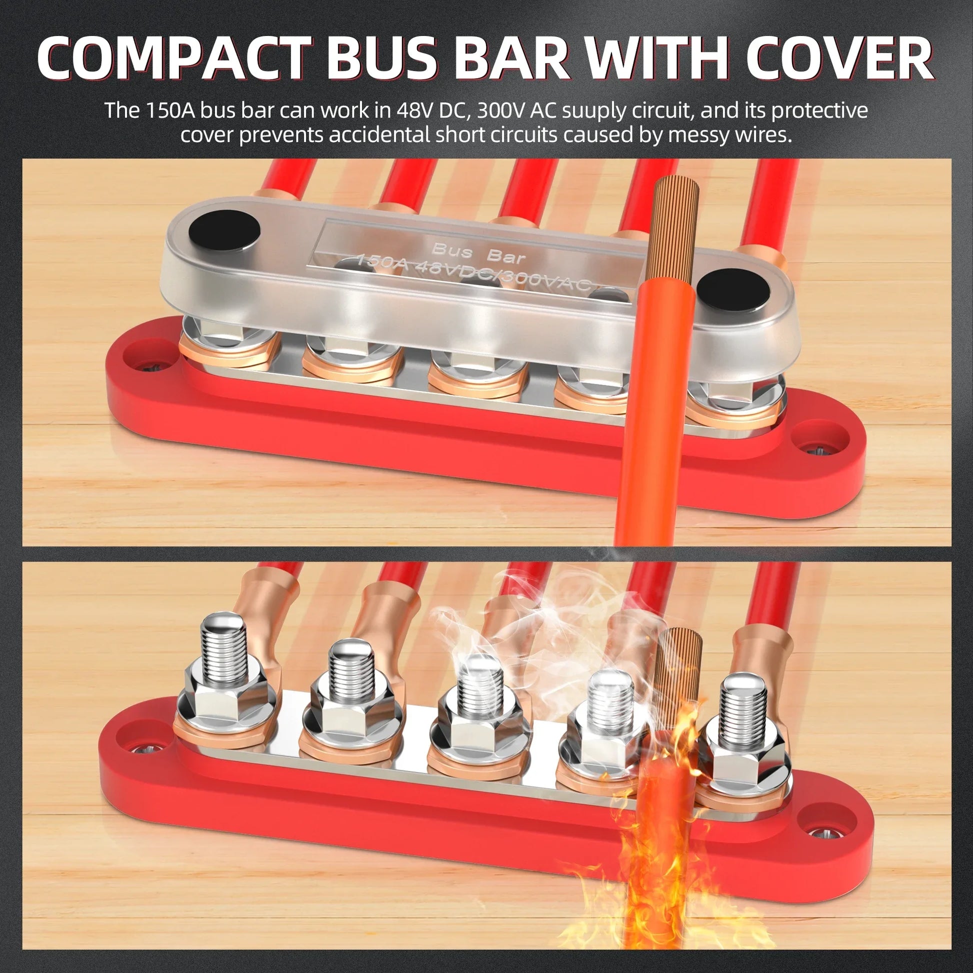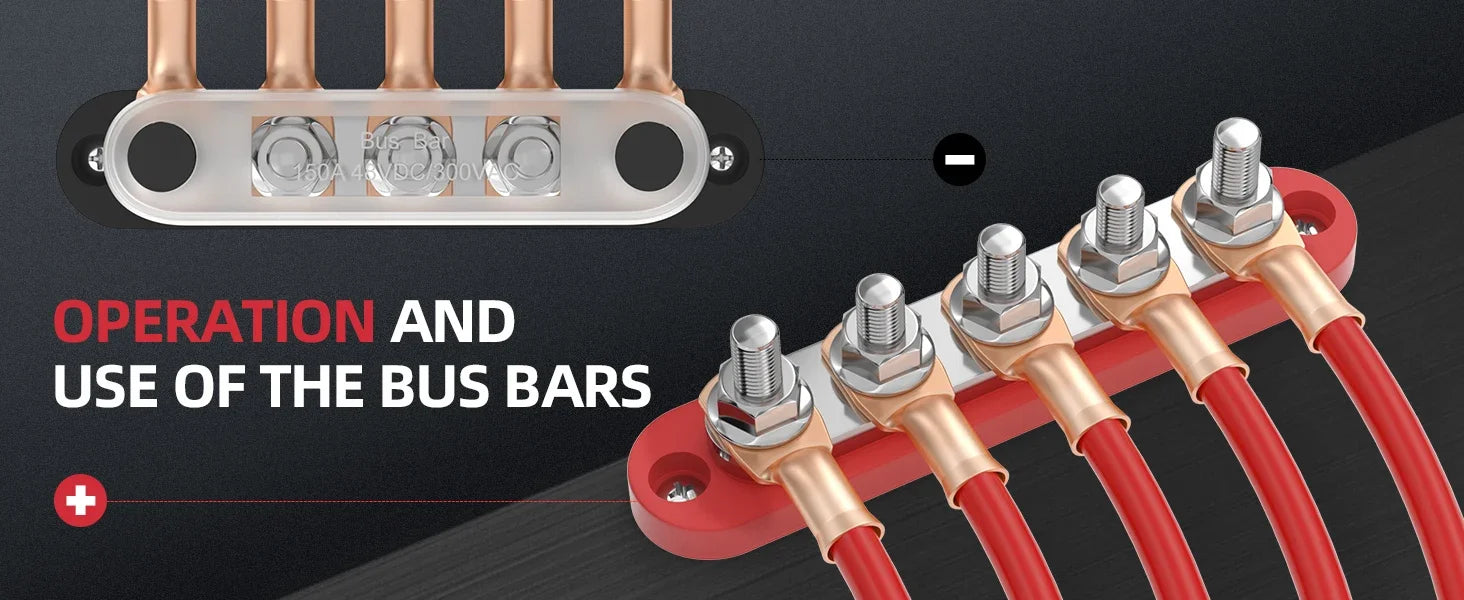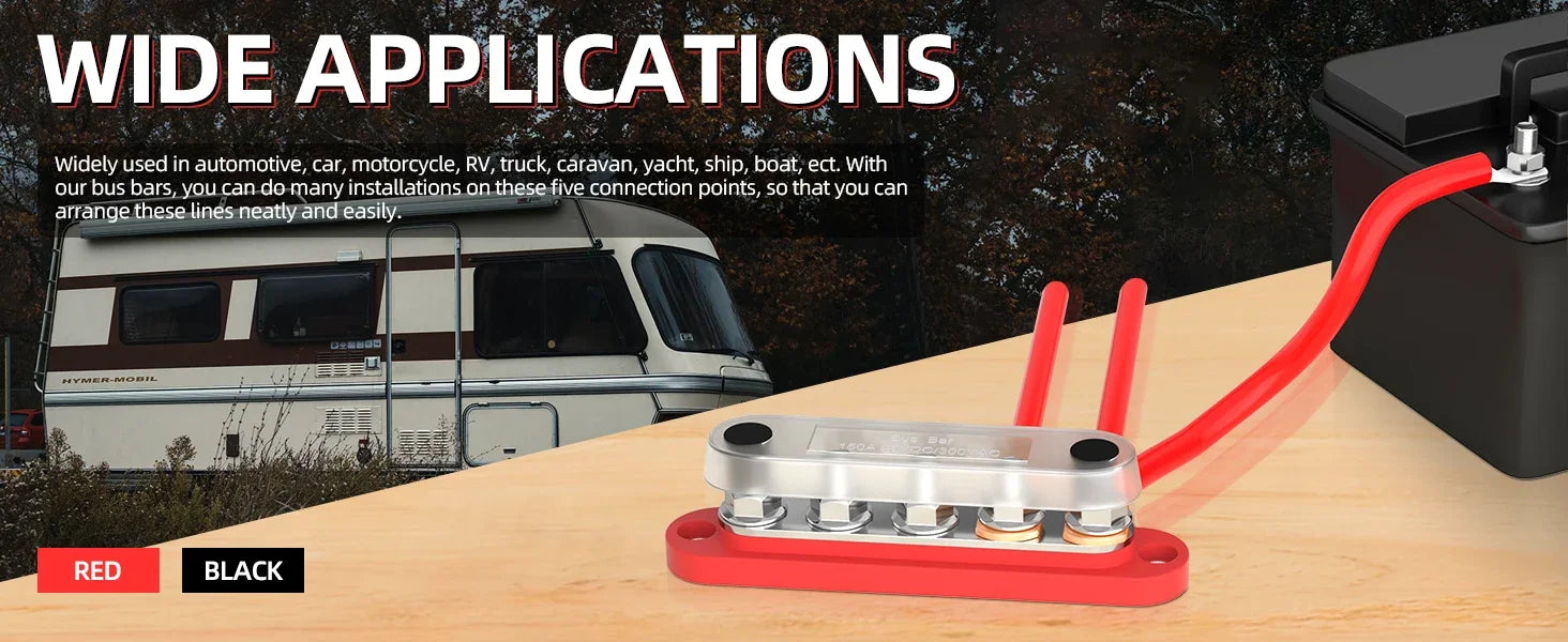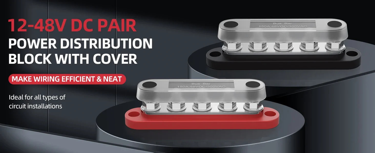150A Terminal Bus Bar 5*M8 Studs Battery Power Distribution Block Red Black 12V Car Busbars for Automotive Marine Boat