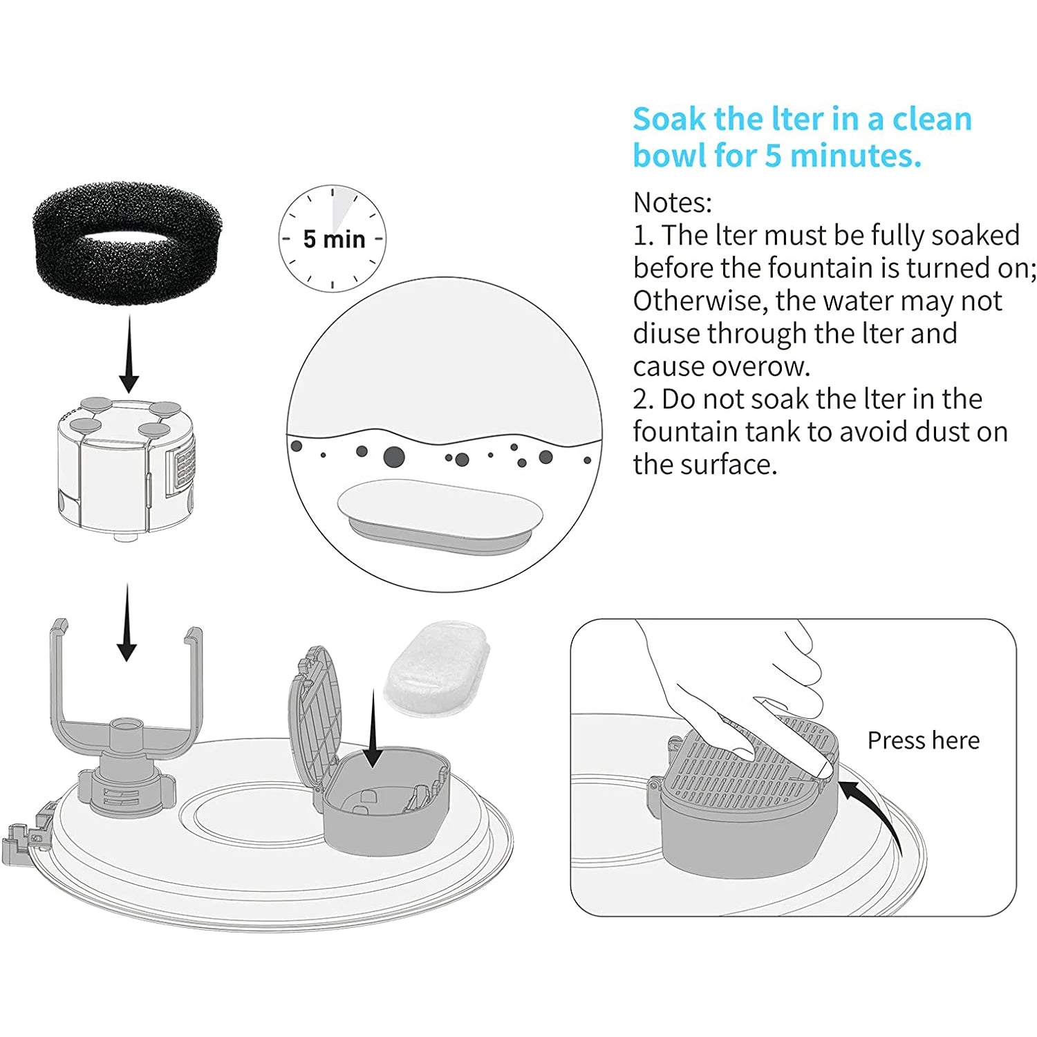 16 Sets Cat Water Fountain Filters for 108Oz/3.2L and 67Oz/2L Adjustable Water Flow Pet Water Fountain Cat Fountain Accessories