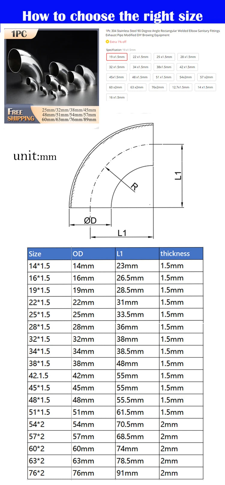1Pc 304 Stainless Steel 90 Degree Angle Rectangular Welded Elbow Sanitary Fittings Exhaust Pipe Modified DIY Brewing Equipment