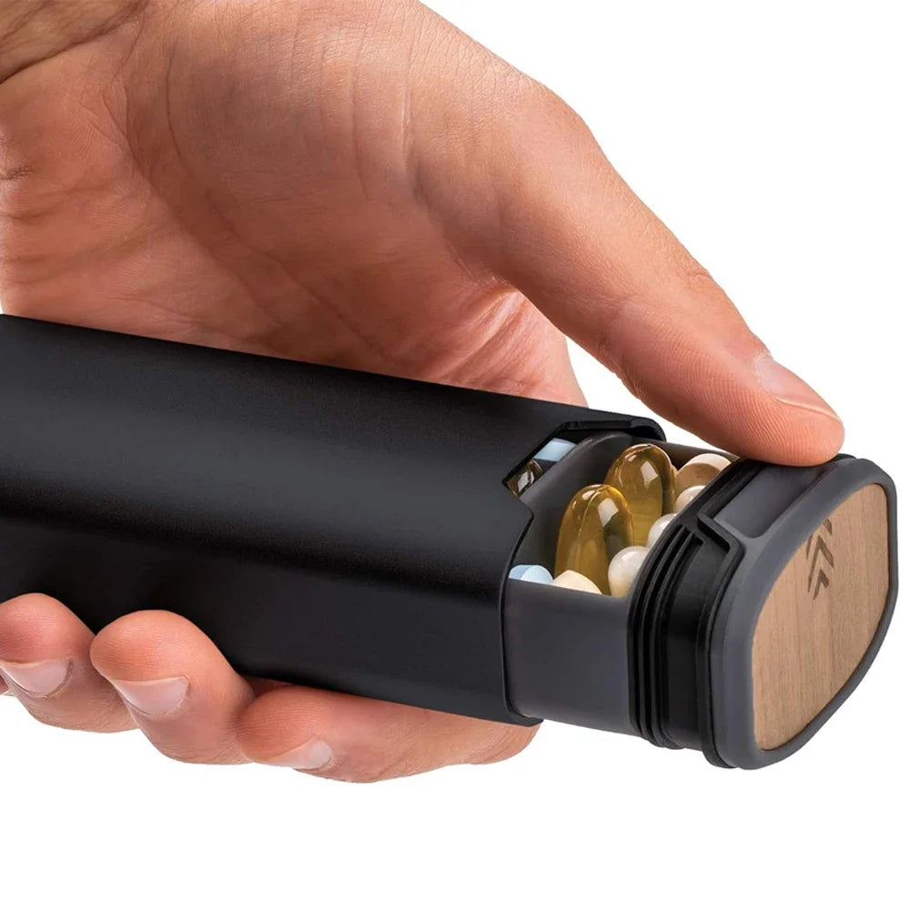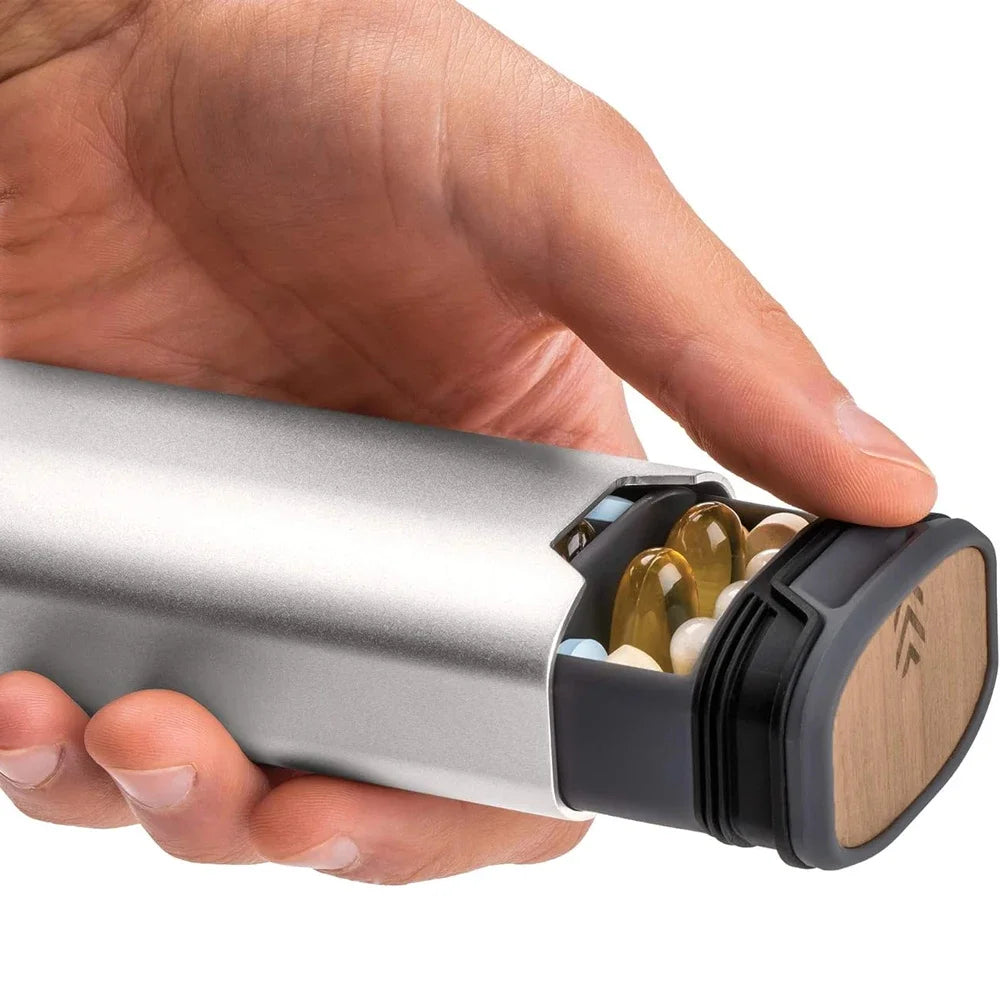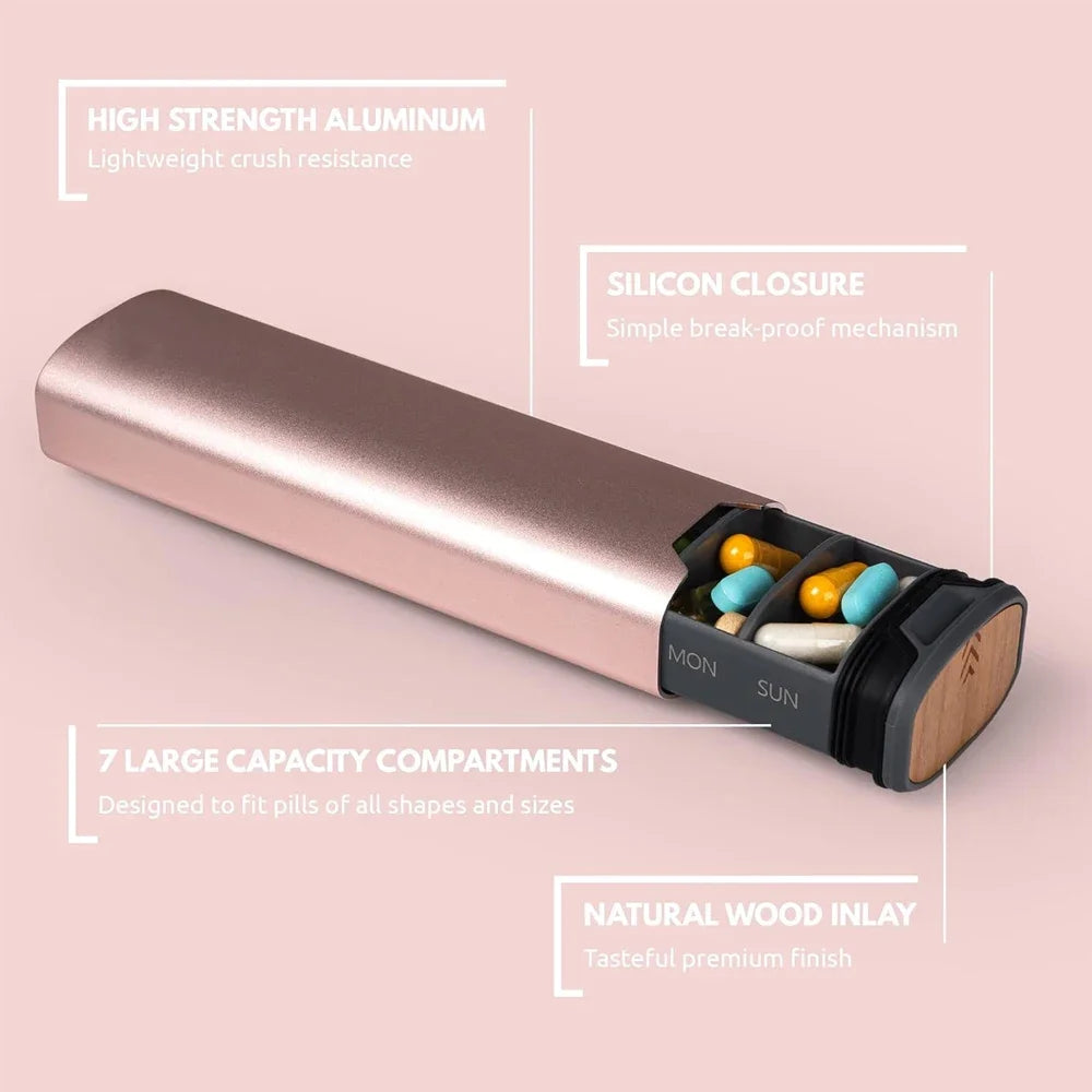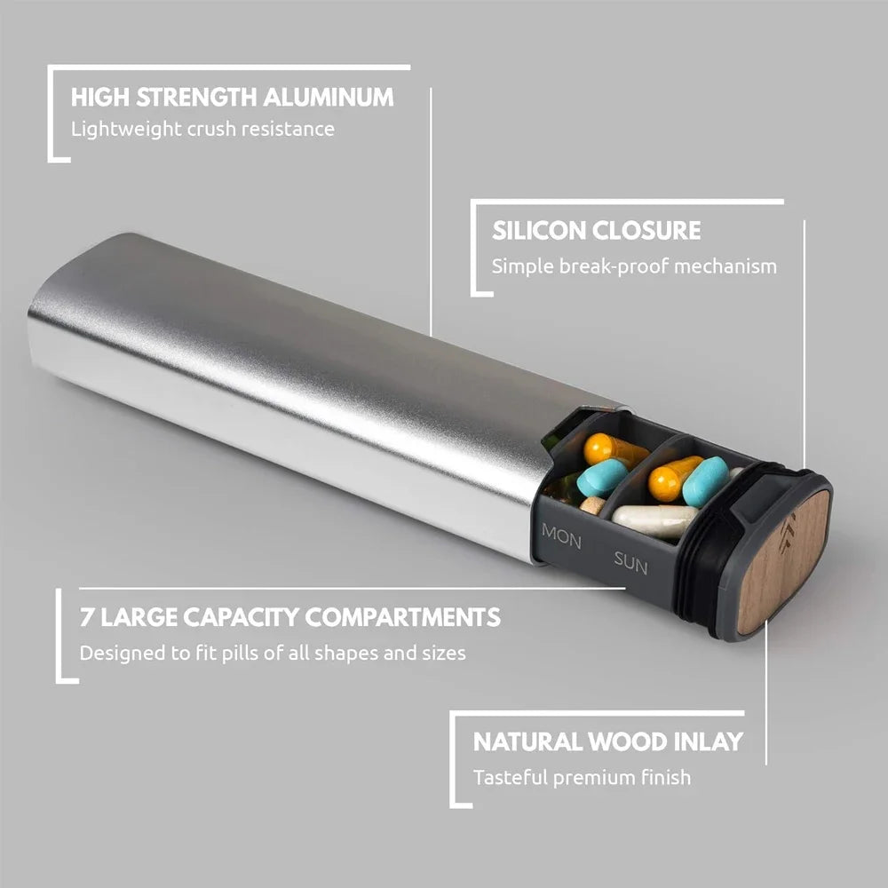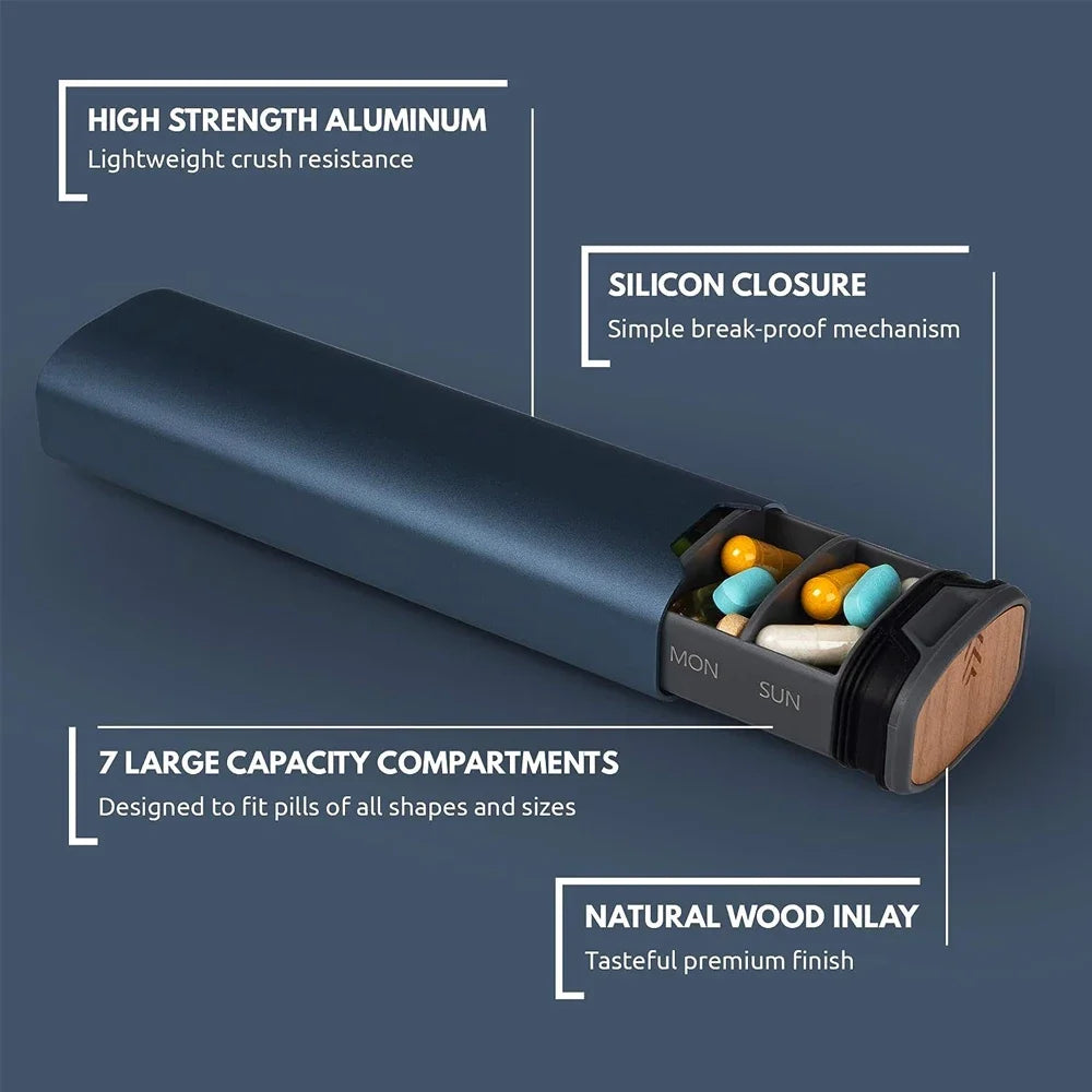 1Pcs 7 Day Weekly Pill Organizer,Premium Stylish Aluminum and Wood Large Capacity Pill Box for Supplements,Vitamins and Medicine