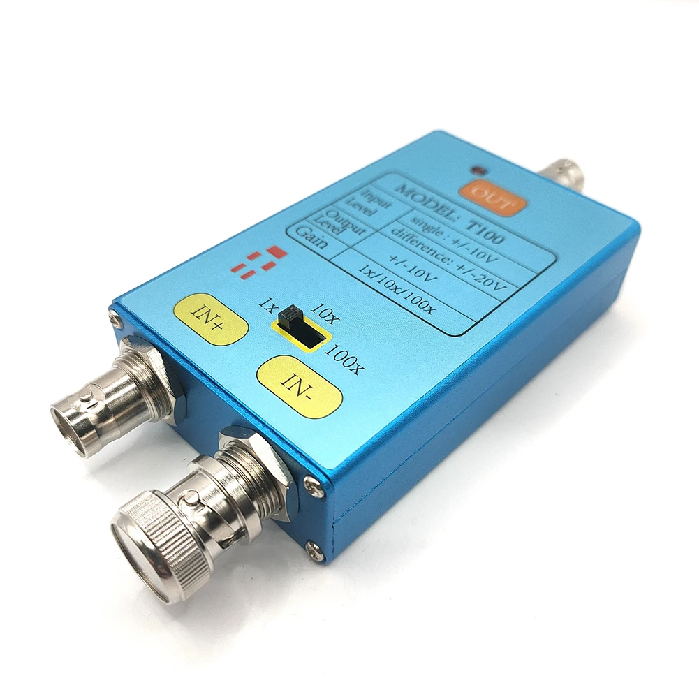 10M Bandwidth Oscilloscope Battery Powered Oscilloscope Accessories Low Noise for Maintenance Personnel for Electronic Engineers Feature: 1. Optional Magnification: Signals Amplifier supports differential input and single-ended input, with a wide input voltage range and a maximum of+/- 10V. 1x/10x/100x selectable magnification, up to 10M bandwidth. 2. Variety of Charging Methods: The Signal Measurement Tool can be powered by batteries, and supports USB and TYPE C interface charging. 3. Ultra-low Noise: The Weak Electrical Signal Measurement Tool has ultra-low noise, high common-mode rejection ratio and long battery life. 4. Durable Material: 10M Bandwidth Oscilloscope exquisite metal shell, strong anti-interference ability. 5. Versatile: Weak Signal Amplifier is widely applicable in the academic experiment, electronic product design,debugging and maintenance, electronic engineering education, etc. Specification: Origin: Mainland China Oscilloscope Parts & Accessories Type: Oscilloscope Parts Single-end input voltage: - 10V to+10V Differential input voltage: - 10V to+10V Single-end input impedance: 2M Differential input impedance: 4M Output voltage: - 10V to+10V Magnification: 1x/10x/100x Bandwidth: G=1-10M G=10-10M G=100-2M Common mode rejection ratio:>80DB Noise: 5nV/ 1KHz Power supply: built-in rechargeable lithium battery Charging interface: USB TYPEC Battery life: about 5 hours Operating temperature: 0 °C-40 °C Working humidity: ≤ 90% RH Power consumption: ≤ 0.2W Volume: 115 * 50.5 * 21mm/4.5*1.9*0.8in Note: This product is specially designed for amplifying weak signals. For weak current, the noise is small, the accuracy is high, and the original signal is well recovered. The oscilloscope is usually unable to measure small signals, and the instrument needs to be amplified before measurement. It can also be used for industrial automation measurement and control because the sensor signal is very weak and needs to be amplified before output. This product is not a high pressure probe. The high pressure probe is used for high pressure operation. For strong current, it is generally used to measure high voltage, and the accuracy requirement is not high. Due to the different monitor and light effect, the actual color of the item might be slightly different from the color showed on the pictures. Thank you! Please allow 1-2cm measuring deviation due to manual measurement.