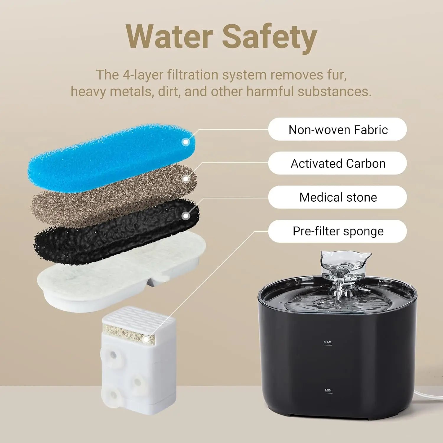 2.2L Water Fountain for Cat Auto Filter Cat Drinker with USB Silent Recirculating Water Dispenser for Cats Pet Water Feeder