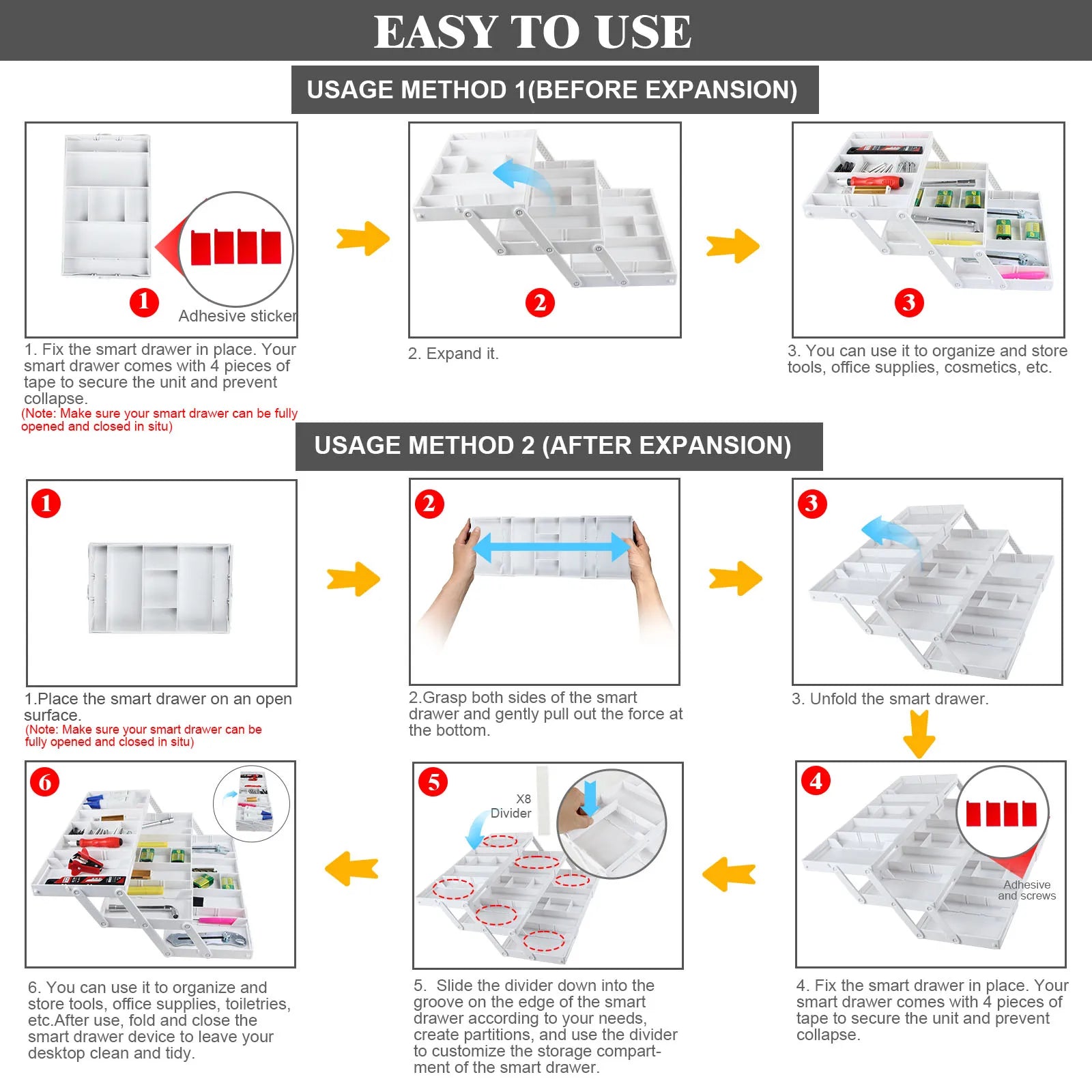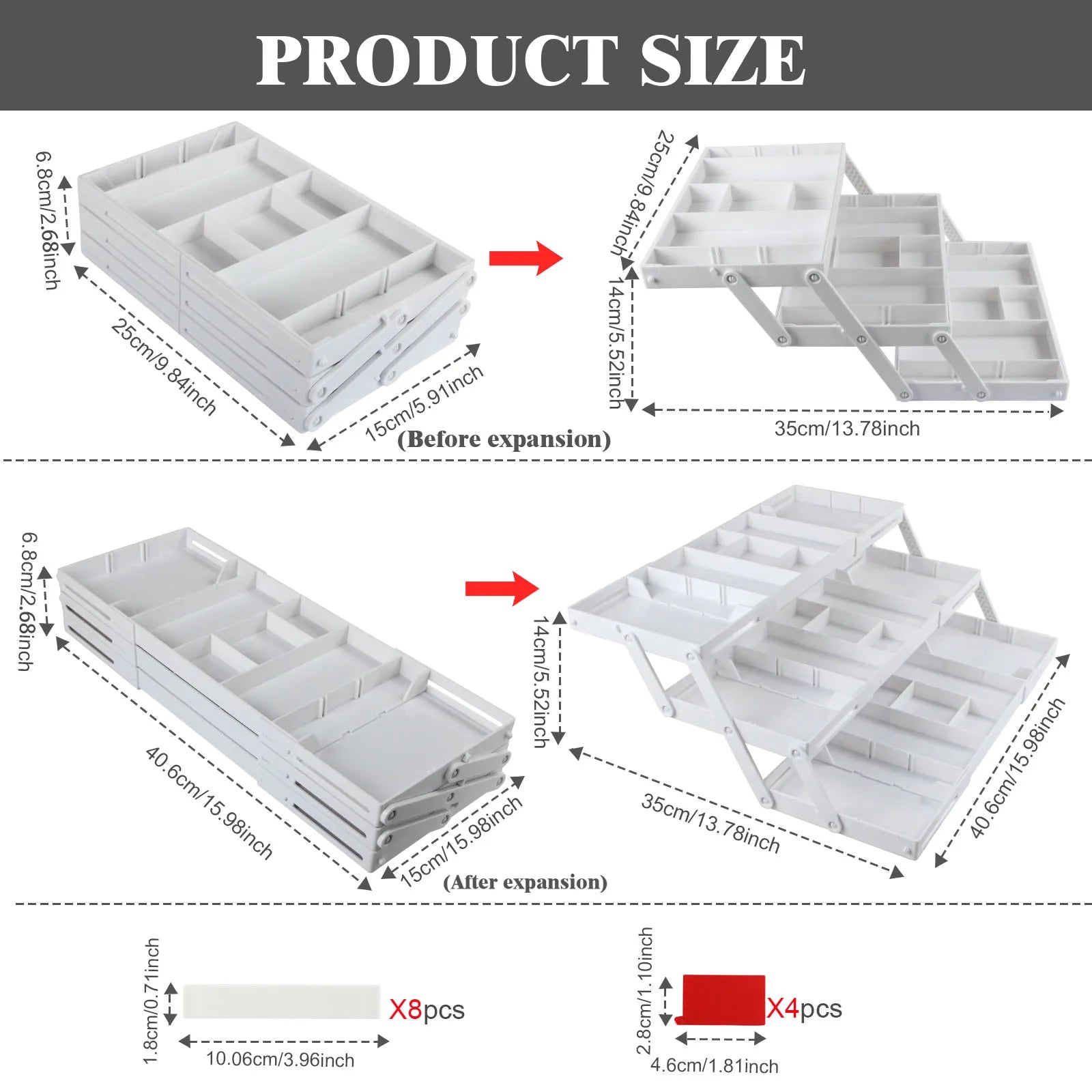 2/3 Tier Drawer Organizer Multi Level Collapsible Expandable Desk Organizer Trays for Office Supplies, Kitchen Gadgets Utensils