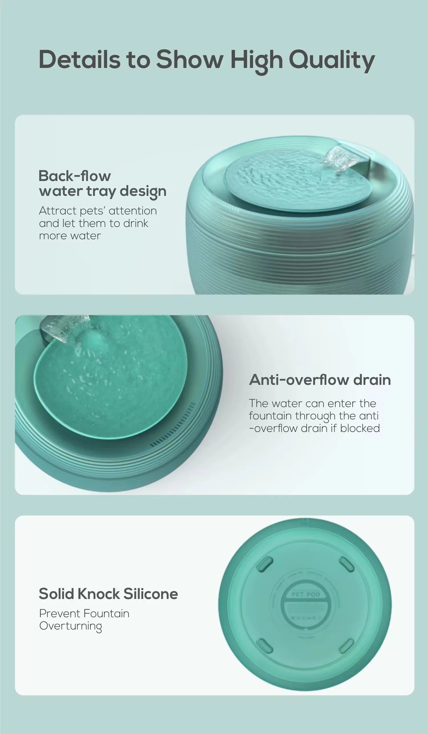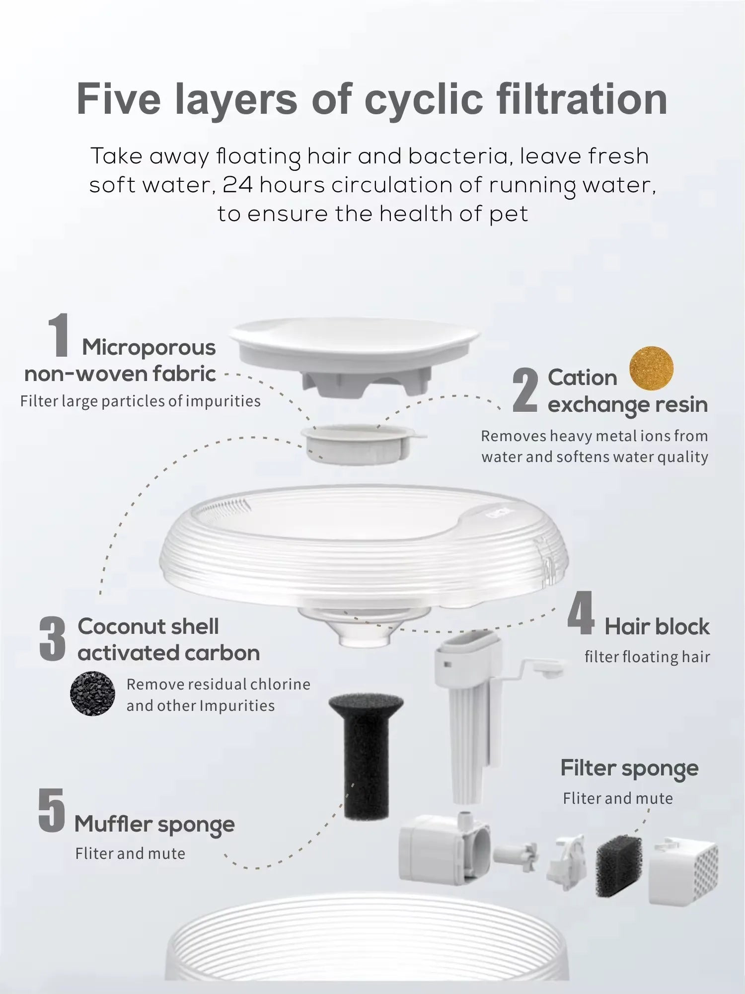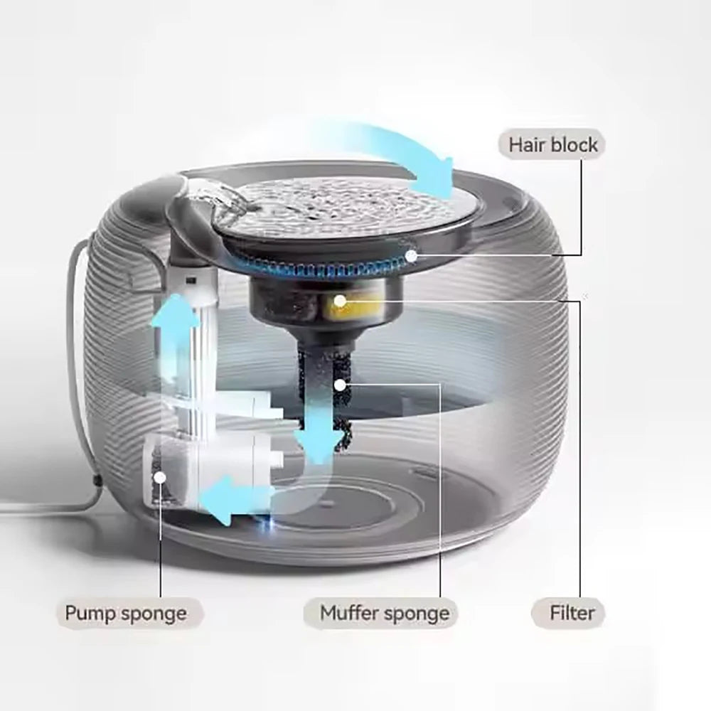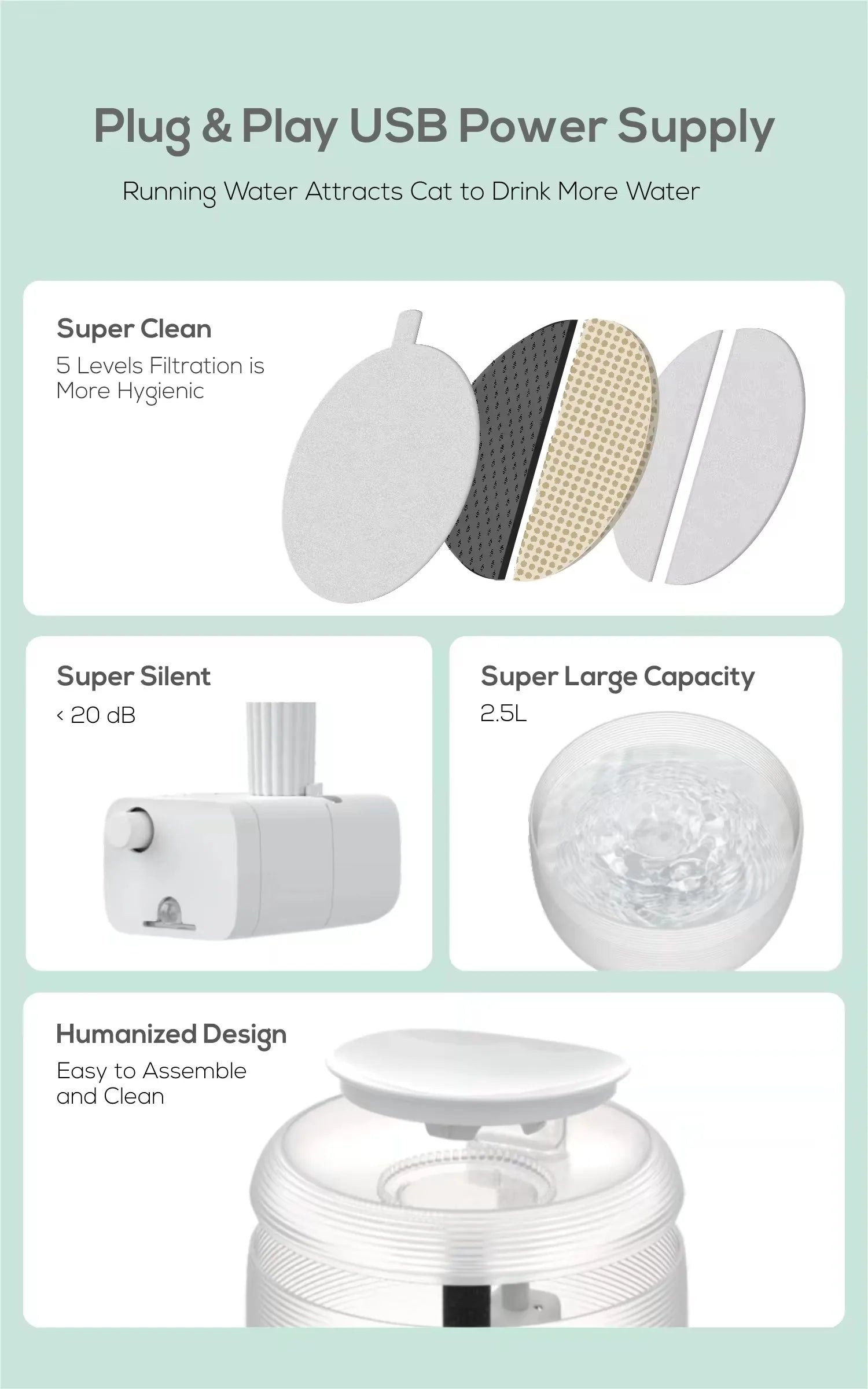 2.5L Extremely Quiet Cat Water Dispenser Pet Water Fountain for Cats and Dogs Built-in LED Light