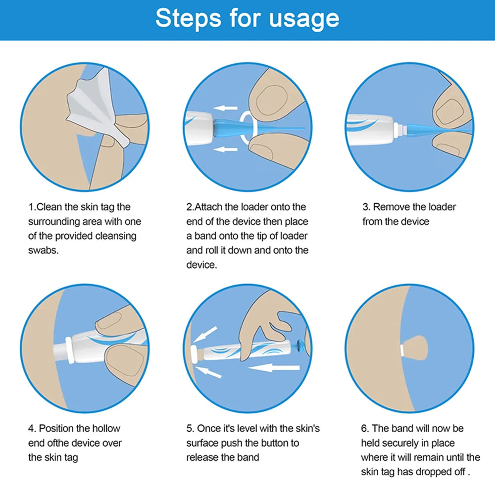2-IN-1 Auto Skin Tag Removal Tool Kit Painless Skin Label Mole Acne Wart Removal Pen with Cleansing Swabs Facial Skin Care Tool