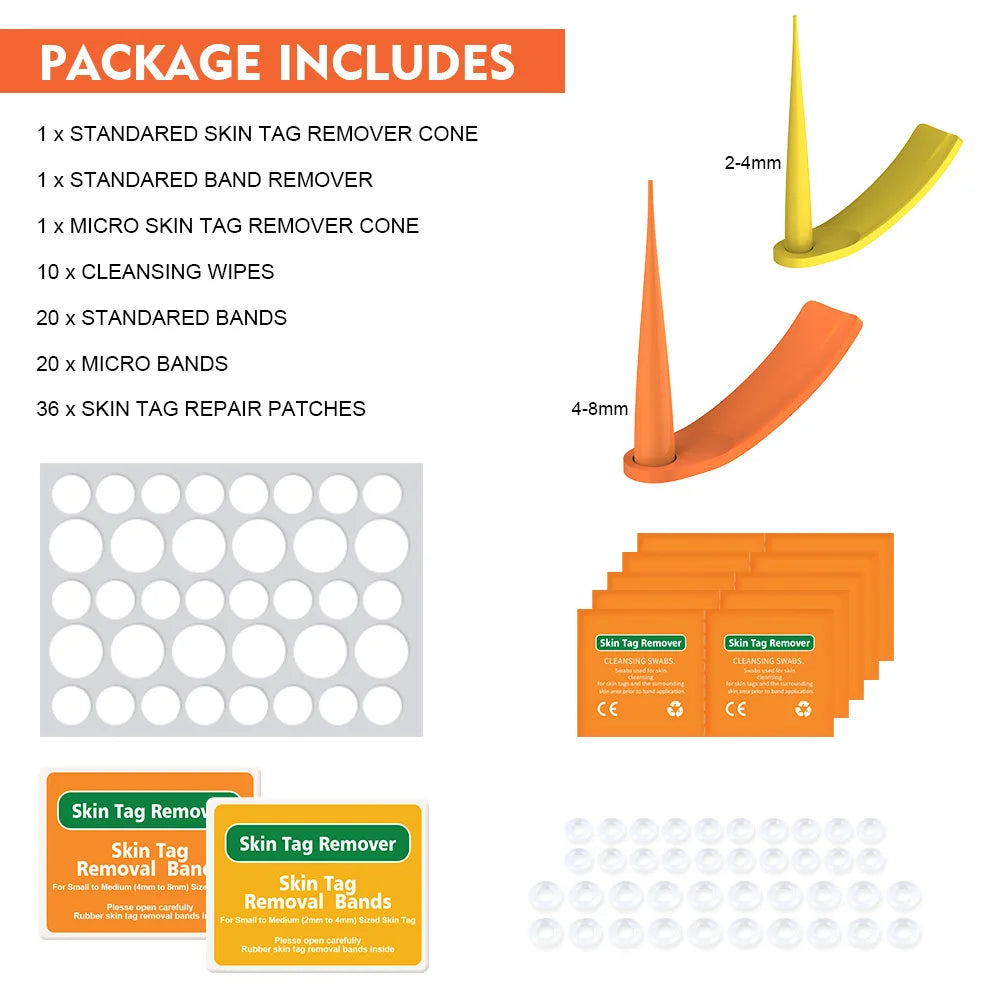 2-IN-1 Auto Skin Tag Removal Tool Kit Painless Skin Label Mole Acne Wart Removal Pen with Cleansing Swabs Facial Skin Care Tool