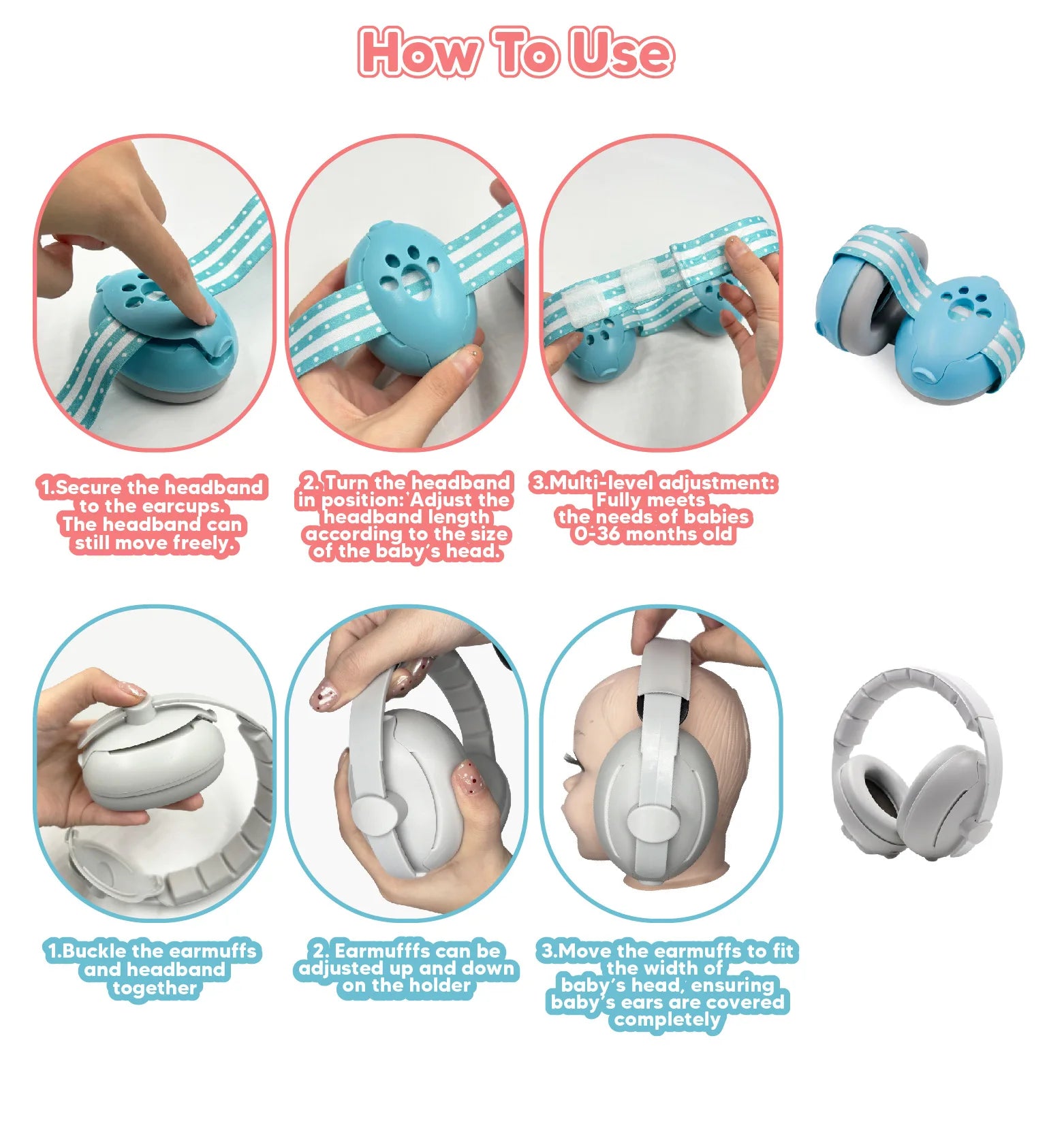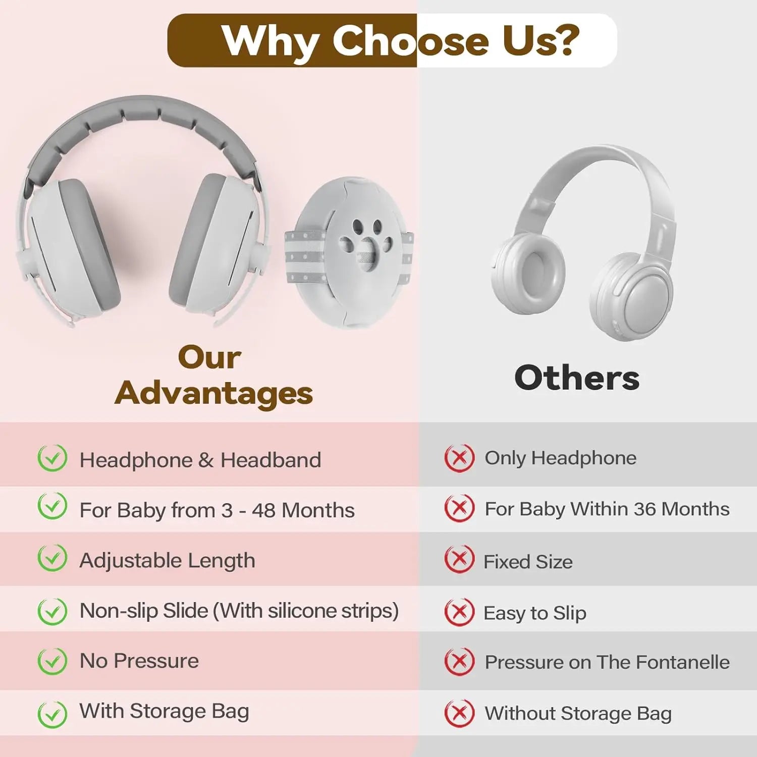 2-in-1 Baby Ear Muffs for Hearing Protection Noise Cancelling Earmuffs for Babies 2 Headbands Travel Essentials for Airplane
