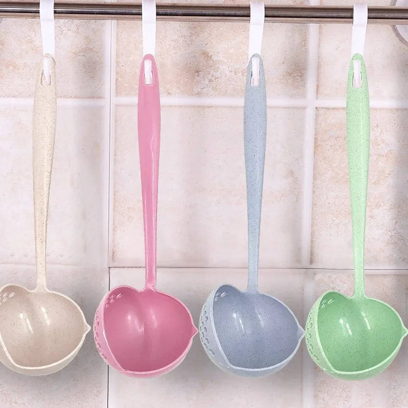 2 in 1 Creative Soup Spoon Long Handle Spoon Creative Spoon Strainer Spoon Cooking Tools Kitchen Wheat Straw Soup Spoon