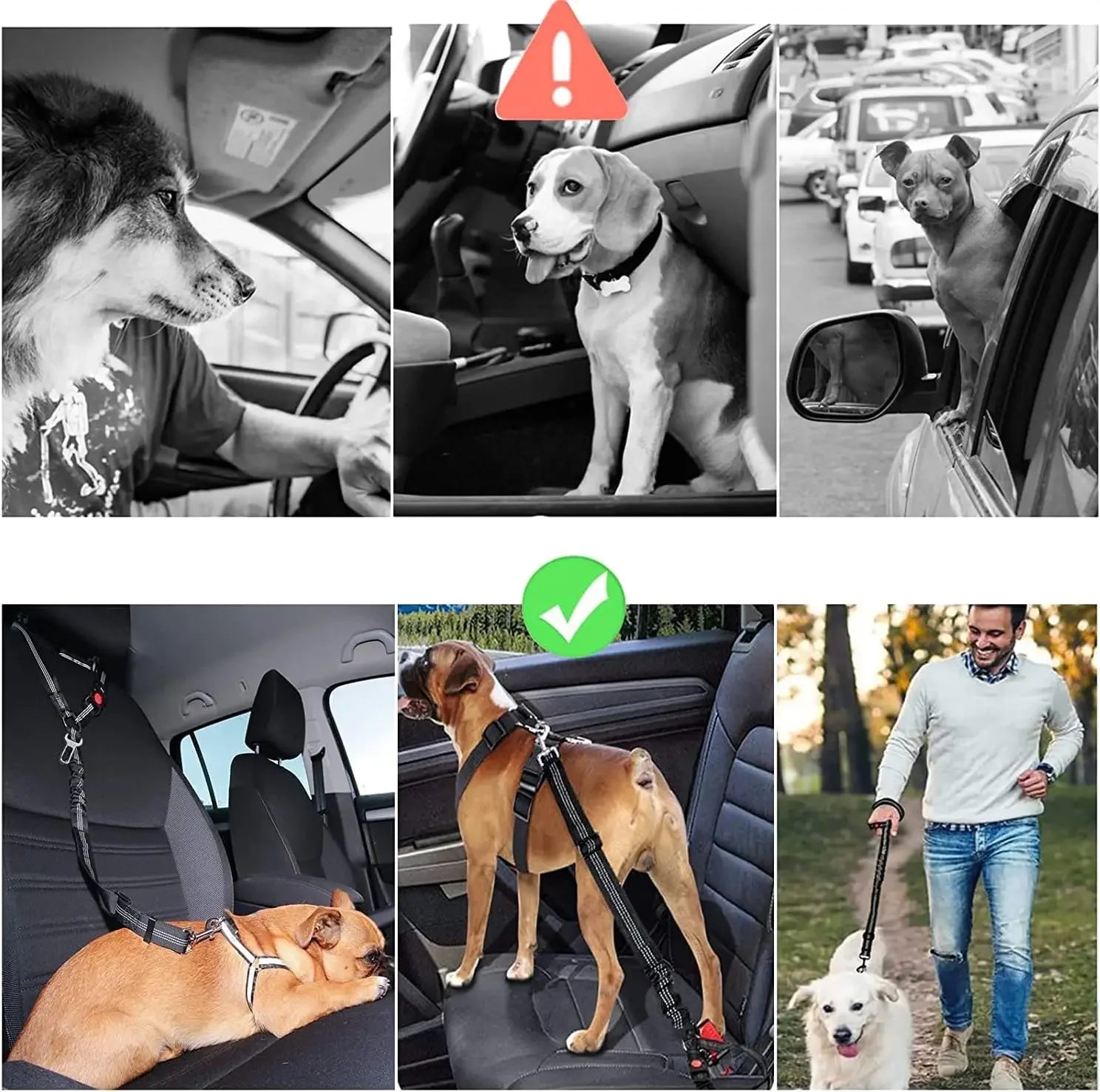 2-in-1 Dog Car Seatbelt Headrest Restraint Adjustable Reflective Pet Safety Seat Belt Clip Buckle Tether Large Medium Small Dogs