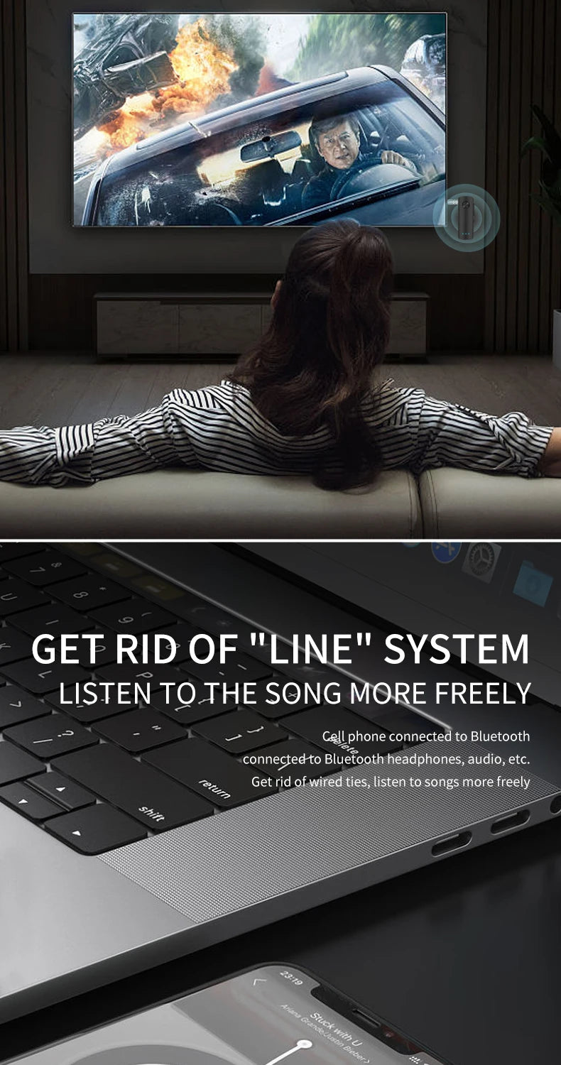 Features7: 2 in 1 Portable Receiver Transmitter 5.2 Bluetooth 3.5mm AUX Stereo Wireless Audio Adapter With Mic for Headphone TV Car Audio