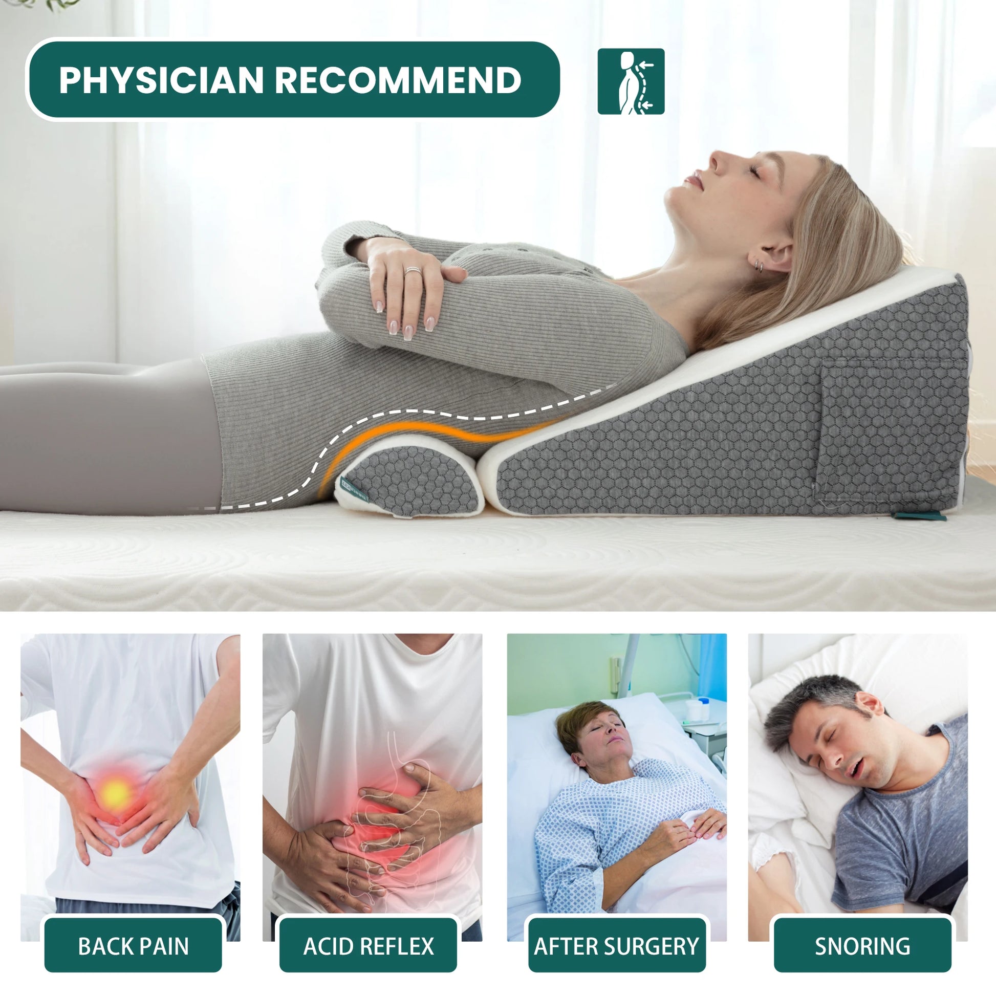 2 pc Wedge Pillow with Memory Foam Top Chic Jacquard Cover for Sleeping and Acid Reflux for Headboard and sofa Triangle Pillow
