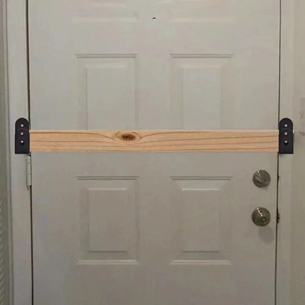2 Pcs Metal Open Rod Support U-bracket Anti-slip Detachable Door Safety Barricade Support Door Barrier Protection Black