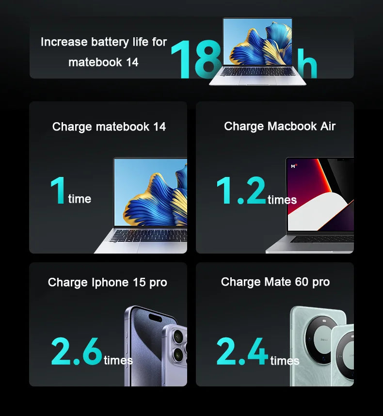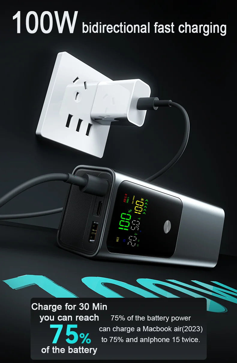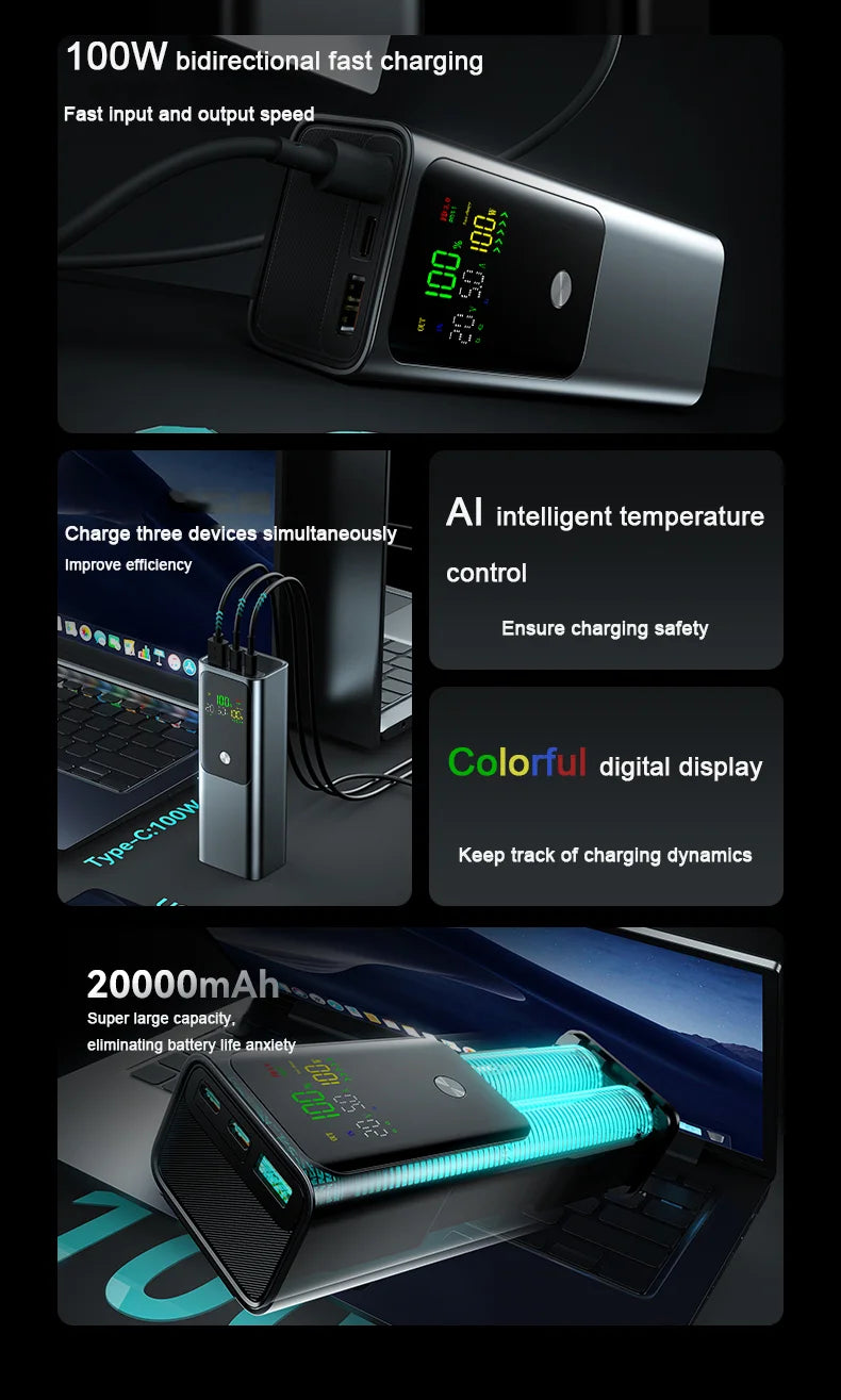 20000mAh 100W Large Capacity Power Bank Bidirectional Fast Charging Portable Powerbank Laptop External Spare Battery for Macbook