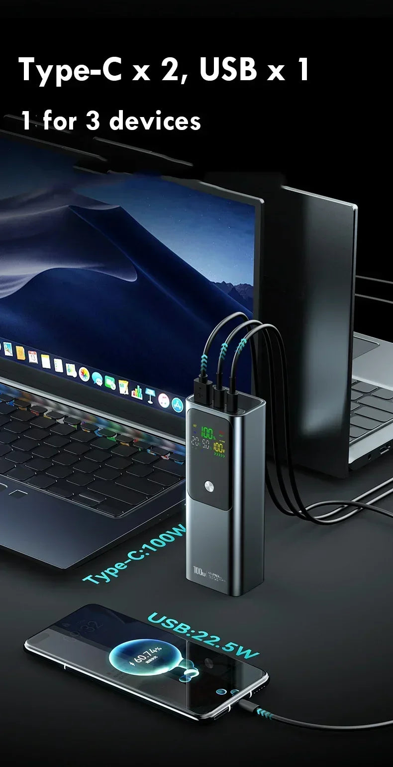 20000mAh High Quality Power Bank 100W Portable Fast Charging Powerbank External Spare Battery For IPhone Xiaomi Laptop 보조배터리