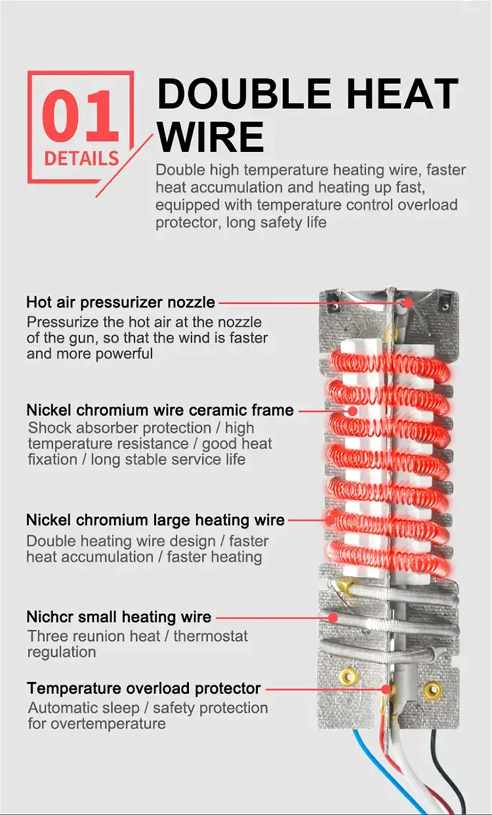 2000W Hot Air Gun High Power Temperature Regulating Industrial Electric Heat Gun Automobile Film Baking Gun Tool