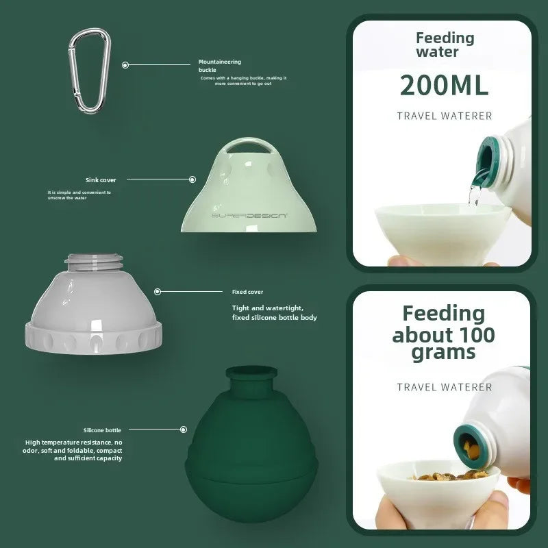 200ml Dog Travel Water Bottle Detachable Bowl Leak Proof Portable Food Feeder Small Dog Cat Supplies for Walking Hiking Travel