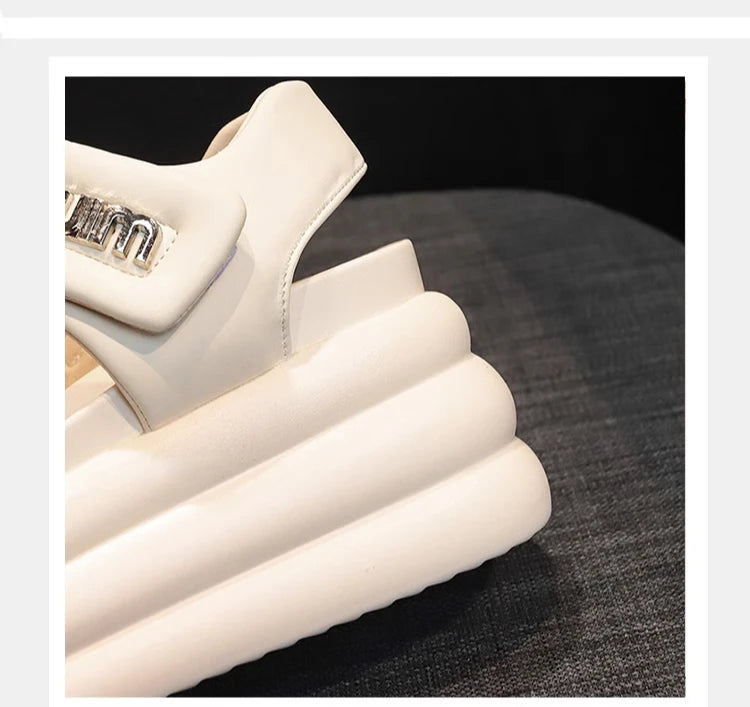 2025 Summer Women Chunky Sandals Leather High Platform Trainers Breathable Casual Slippers Shoes Woman 8.5CM Heels Wedge Sneaker