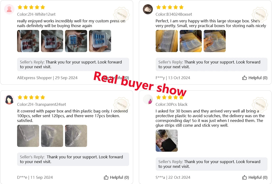 20pcs Press On Nail Packaging Boxes With Double Sided Adhesive Nail Tape Acrylic Press On Nail Storage Box in 4 Colors For Nail