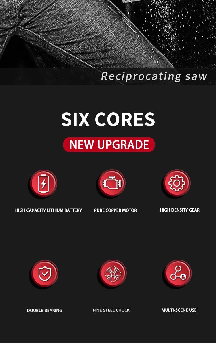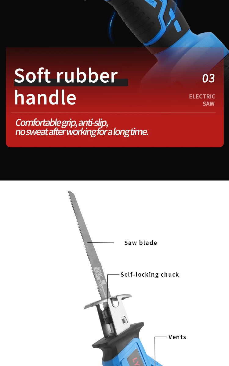 20V Rechargeable Reciprocating Saw Adjustable Speed Electric Saw Blade Saw Portable Wood Metal Cutting Chain Saw