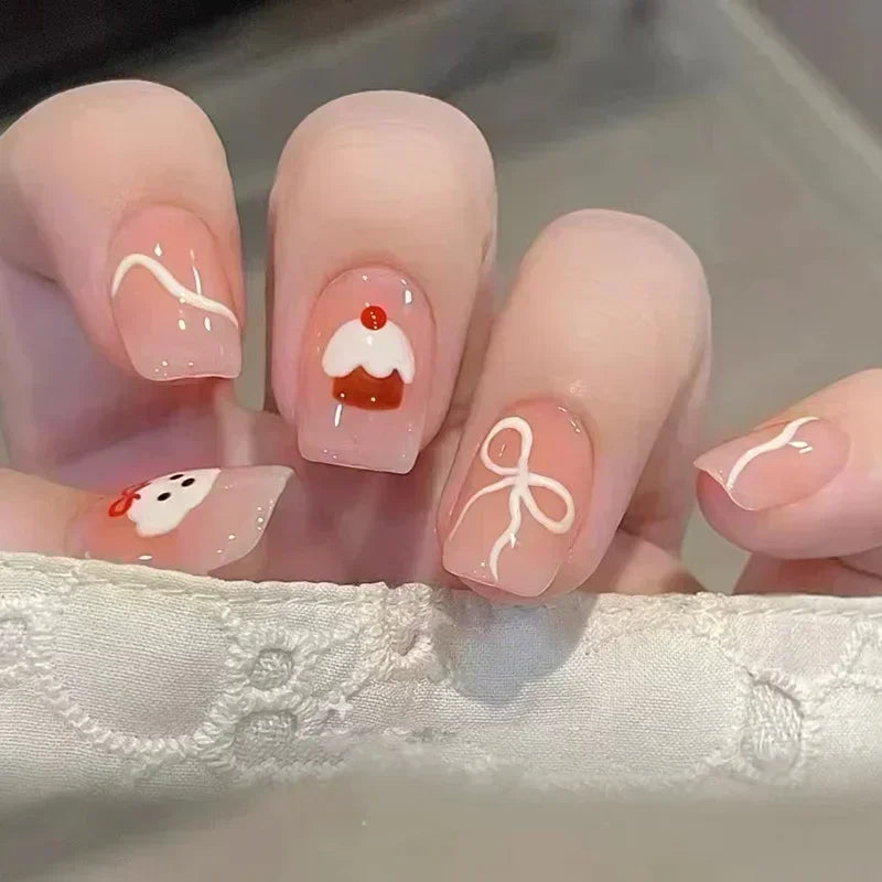 24pcs Detachable Short Press on Nails Y2k rhinestone False Nails with Glue Ballet Sweet Cool Girls Artificial False Nails Tips