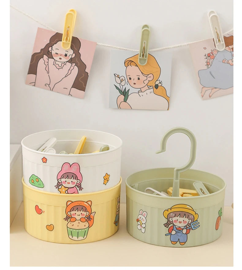 24PCS Laundry Clip Non-slip Windproof Metal Spring Clothes Peg Clothespin Windproof Laundry Clips Drying Racks with Basket