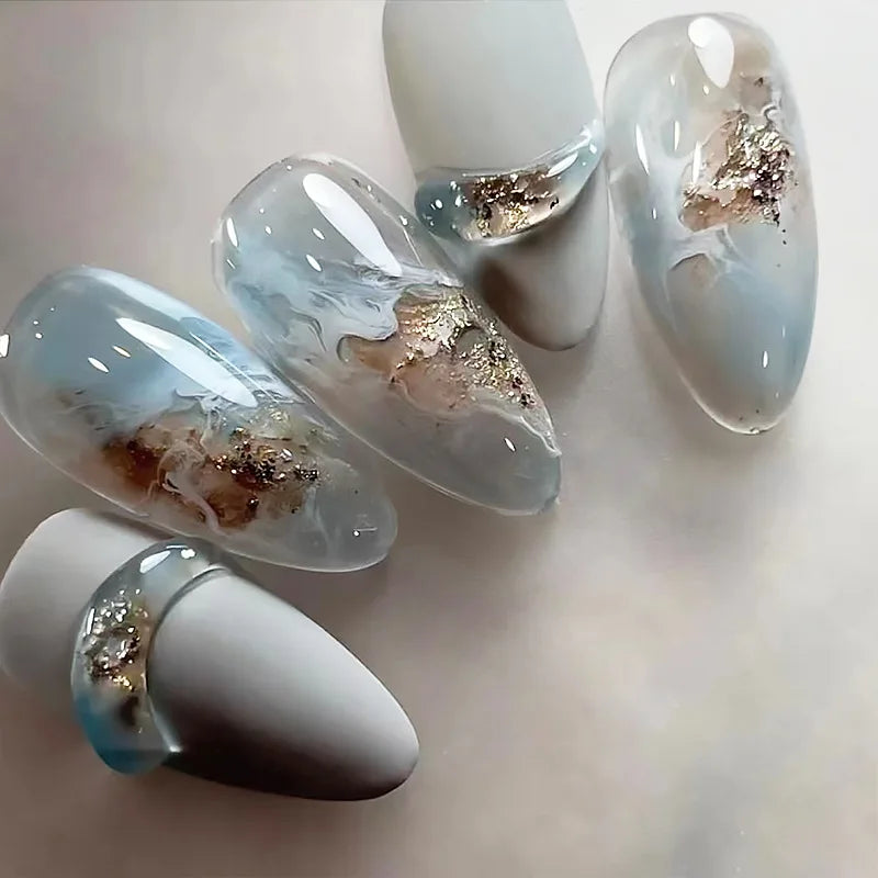 24pcs Romantic Y2k Star Press On Nails Gradient Blue French Style Gold Moon Designs Fake Nail Sweet Almond False Nails For Women
