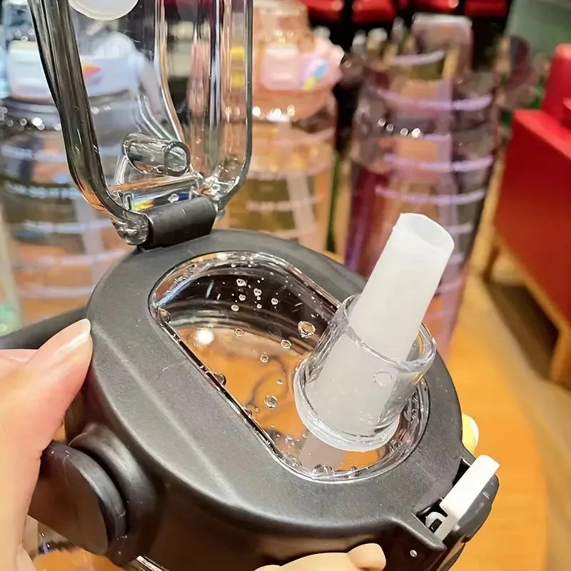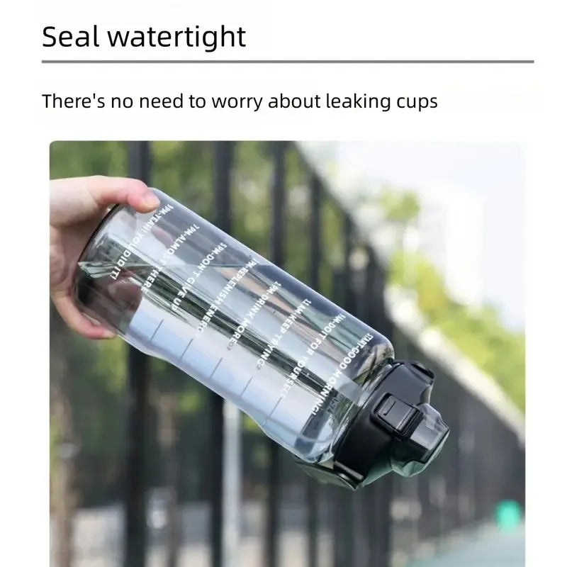 2L Large Capacity Sports Water Bottle With Straw Portable Leakproof Sports Fitness BottleS With Time Marker for Outdoor Gym