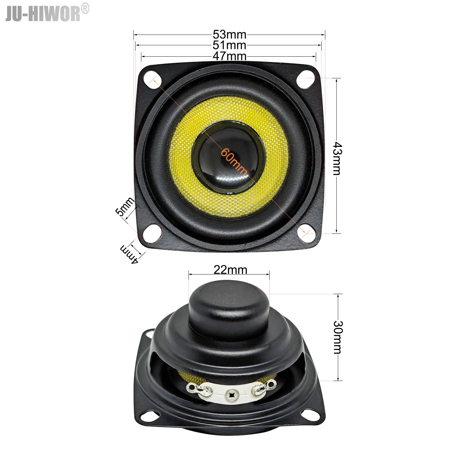 2pcs 4 Ohms 5W 53mm Square 16 Core Dual Neodymium Magnetic Waterproof Speaker 2 inch Yellow Glassfiber bluetooth Loudspeaker