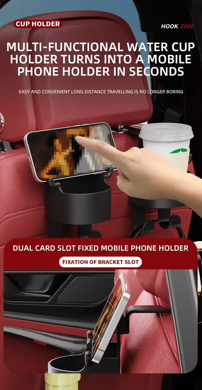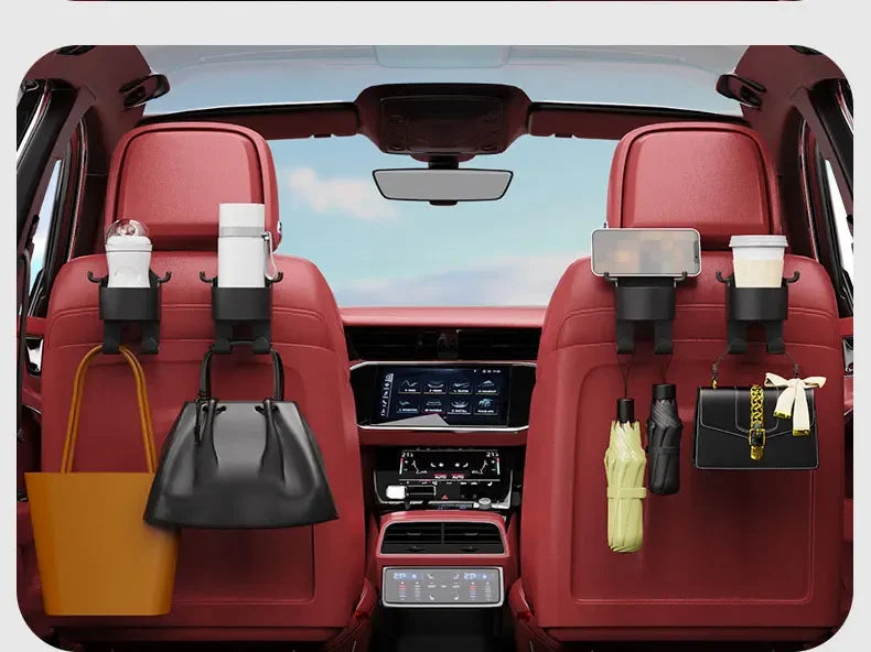 2Pcs Car Seat Headrest Hook Hanger Storage Organizer Universal with Cup Holder for Handbag Fit Universal Vehicle Car Accessories
