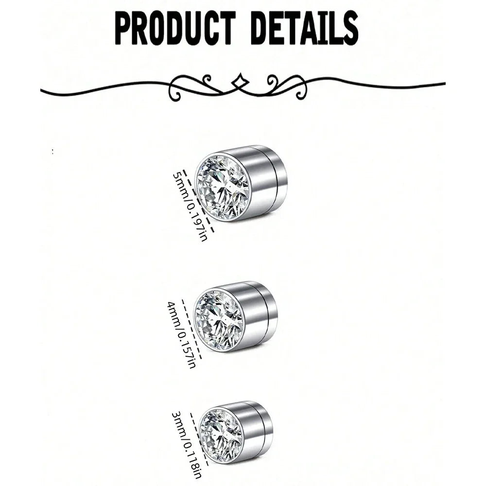 2Pcs CZ Dia 3-5mm Faux Non Pierced Ear Ring Ear Cuff Stainless Steel Fake Ear Ring Studs For Women Men No Piercing Body Jewelry