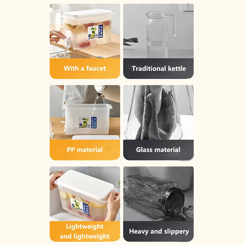 3.5L Water Kettle With Faucet Beverage Dispenser Cold Juice Lemonade Drinks Bucket Liquid Storage Tank Outdoor Fridge Organizers