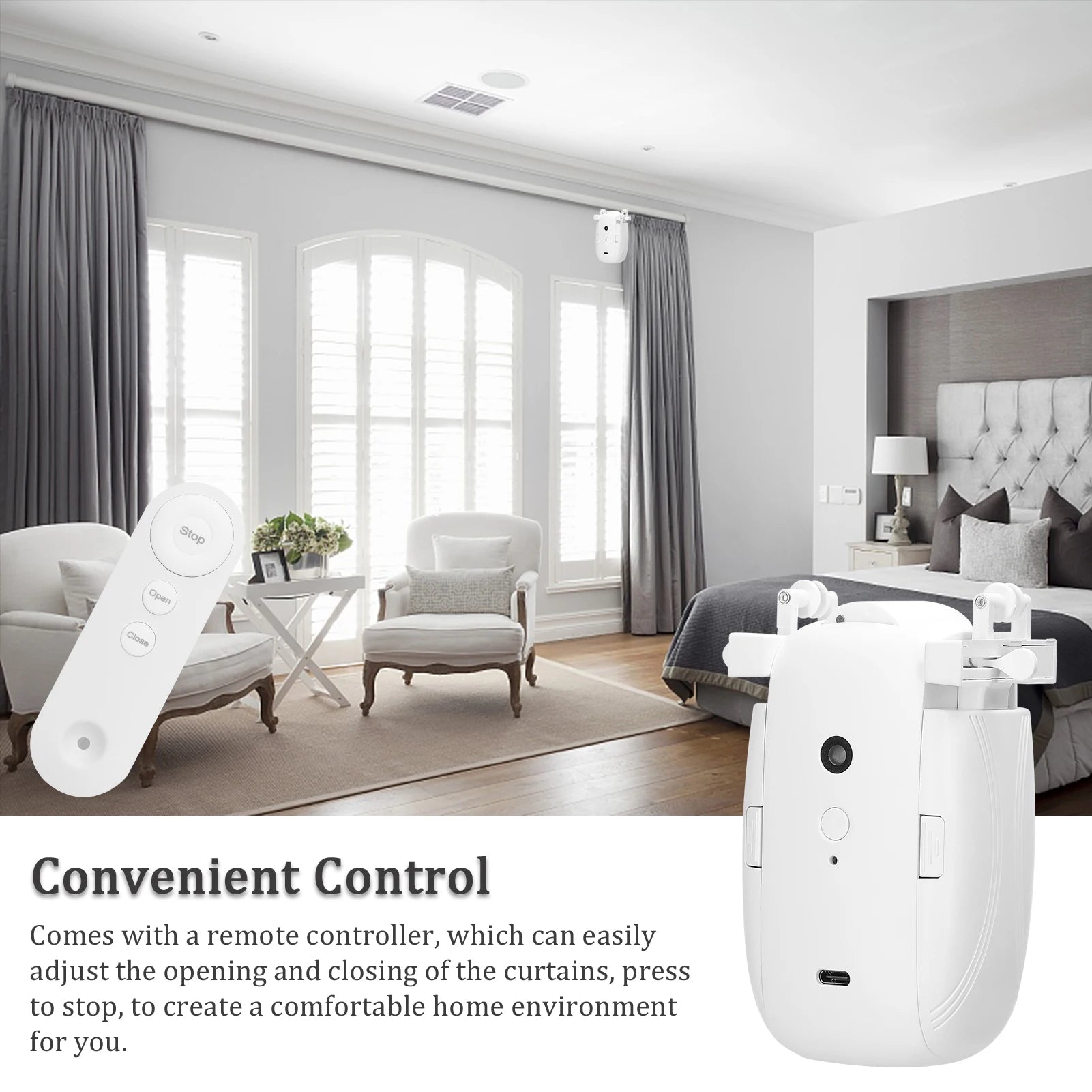 3 in 1 Intelligent Curtain Motor Home Electric Curtain Opener No Wiring with Remote Controller for I-Rail/U-Rail/Roman Rod