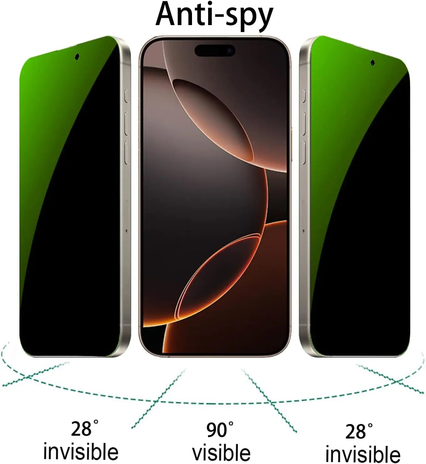 3 pcs Green Light Privacy Protection Anti Blue Light Tempered Glass Screen Protectors, Scratch-Resistant, Compatible With iPhone