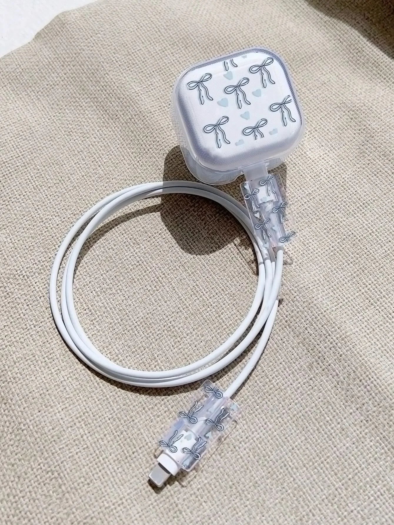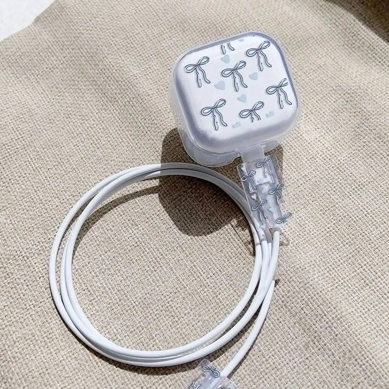 3-piece set Pink Bow Set Cable Protector for iPhone 20W UK HK Plug Charger Case Phone Wire Cord Organizers