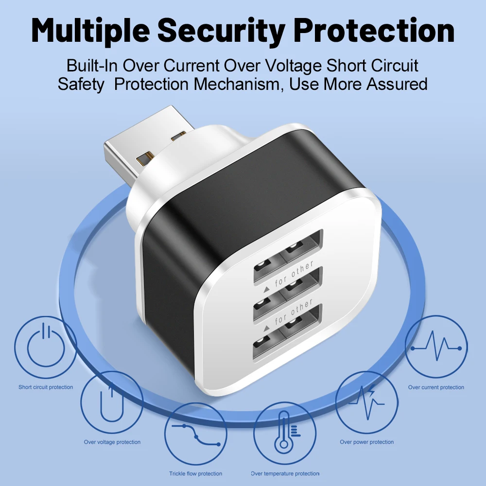 3 Port USB Slots Adaptor USB 3 in 1 2.0 Multple USB Interface Extender Auto Electronics Accessories