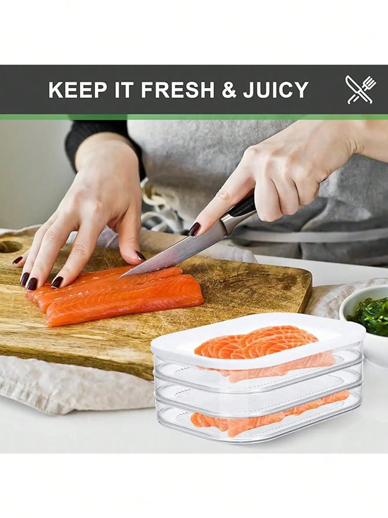 3-Tier Stackable Lunch Organizer – Fridge Container for Bacon, Cheese & Deli Meats w/Lid – Space-Saving Kitchen Storage