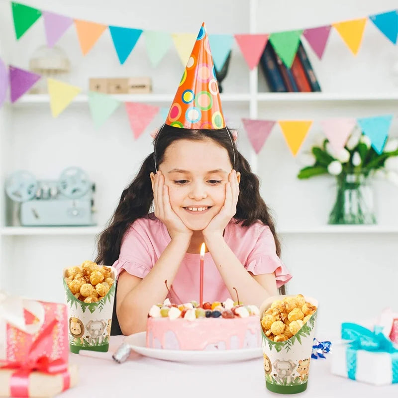 30PCS Jungle Animal Disposable Kraft Paper Slant Snack Cups Kraft Paper Slant Cups Snack Baking Cakes French Fries Containers